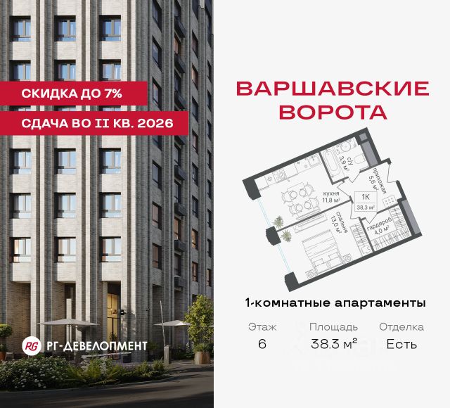 Продаются 1-комнатные апартаменты 40.6 кв.м. в МФК "Варшавские ворота" на 27-м этаже 30 этажного дома. МФК "Варшавские ворота" — это точка баланса между природой и городом, стилем и функциональностью, жизнью сегодня и устойчивым будущим. Коротко о важном: - 1 минута пешком от м. Аннино; - Удобные выезды на Варшавское шоссе и МКАД; - Высота потолков 2,7 - 3 м; - Закрытый двор-парк; - Школы и детские сады в 10-15 минутах пешком от дома; - Технические лоджии для размещения кондиционеров; - Подземный паркинг; - РГ-Девелопмент — ТОП-20 крупнейших застройщиков Москвы. Проект сочетает в себе современную архитектуру и продуманное благоустройство с уникальным природным окружением. Всего в нескольких минутах от дома — девять парков, каскад прудов и крупнейшие лесопарковые зоны Москвы, создающие ощущение жизни в зеленом оазисе посреди мегаполиса. Архитектурная концепция - стиль Чикаго в Москве. Фасады облицованы вентфасадами под клинкерную плитку. Фасады подчеркивают строгие линии и современный стиль, а входные группы разработаны московским бюро Синтаксис. Вестибюли оформлены с применением керамогранита, декоративной штукатурки и гипсовых панелей, детали из латуни добавляют изысканности. Проект находится в 1 минуте пешком от метро "Аннино", в 12 минутах от станции "Улица Академика Янгеля" и рядом с МЦД-2 "Красный Строитель". Для автомобилистов предусмотрен прямой выезд на Варшавское шоссе и два съезда на МКАД, что позволяет быстро добираться в любую часть города. Среди планировочных решений представлены разнообразные форматы: от функциональных студий до просторных 4-комнатных квартир и апартаментов. Высокие потолки усиливают ощущение простора, а продуманные планировки включают мастер-спальни, гардеробные, объединённые кухни-гостиные и несколько санузлов. Центральное пространство комплекса — закрытый двор без машин. Он разделён на функциональные зоны: детские игровые комплексы, спортивные площадки и уютные места для тихого отдыха. На первых этажах разместятся магазины, кафе и сервисы, что позволит решать повседневные задачи, не покидая территорию комплекса. Для семей с детьми предусмотрен частный детский сад на 50 мест. Подземная парковка и кладовые обеспечат удобство хранения и безопасность автомобилей. Комплекс окружён девятью парками и лесопарками, каждый из которых обладает своей атмосферой. Выйти на пробежку в Аннинском лесопарке, насладиться прогулками по аллеям в Битцевском лесу, спланировать пикник или велопрогулку в Покровском парке, любоваться каскадом Кировоградских прудов. Всего в двух станциях — музей-заповедник "Царицыно" с дворцами, фонтанами и живописными пейзажами. Здесь каждый житель найдёт своё любимое место для отдыха. Южное Чертаново - район развитой инфраструктурой, где сочетаются городские удобства и природное окружение. В шаговой доступности находятся школы, детские сады, спортивные комплексы и торговые центры. Это спокойный и благоустроенный район.