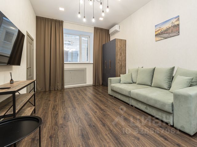 Квартира позволяет зонировать пространство, превращая ее то в студию с единым пространством, то в спальню и изолированную кухню-гостиную, огромная лоджия может служить кабинетом или лаунж-зоной. Есть место для работы, отдыха, приема гостей, гардероба. Из окон вид на старинные особняки.