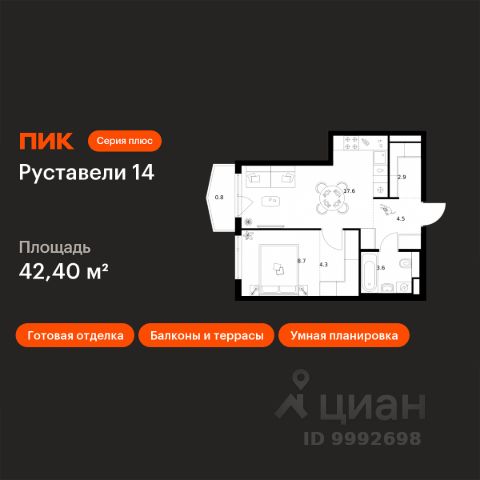 Продаётся 1-комнатная квартира площадью 42 кв.м на 20 этаже 55 этажного корпуса Эльбрус в квартале небоскребов "Upside Towers". В квартире отделка White-box, c видом на детский сад, БЦ Останкино, останкинскую башню, школу. Номер квартиры А2005. Upside Towers - технологичный квартал строится в динамично развивающемся Бутырском районе, в 3 мин. от метро, в 5 мин. от ТТК. На территории 7 га возводится 5 высотных башен от 19 до 58 этажей, названных в честь главных вершин земли. Квартиры с панорамными окнами в пол, высокими потолками и современными инженерными решениями. Благоустроенная зеленая территория включает: приватные дворы, природный комплекс, прогулочный бульвар, ландшафтный парк 2,5 га с сенсорным садом и многофункциональными игровыми и спортивными площадками. Большое внимание в проекте уделяется созданию социальной инфраструктуры. Более 2000 кв.м. отдано под Upside club закрытый клуб, уникальное пространство для общения и развития жителей квартала, включая SKY SPA Relax на 47 этаже башни "Атлас" расслабляющей атмосферой, джакузи, сауной, залами для релаксации и йоги доступное жителям Upside Towers, всесезонное барбекю-патио, лаундж зону с камином и роялем, многофункциональные игровые пространства, домашний кинотеатр, коворкинг и переговорные. В башнях откроются смотровые террасы для резидентов с панорамными видами на город, парки, Останкинскую башню, ВДНХ, Ботанический сад и Москву-Сити. В рамках проекта строится государственная школа и детский сад, разместится более 15 000 кв.м. коммерческой инфраструктуры. Насыщенная социальная инфраструктура формирует множество сценариев для жизни на территории квартала. В Upside Towers применяются лучшие технологии и практики, чтобы обеспечить высшее качество жизни: Воздух, не уступающий по качеству горному, обеспечит приточно-вытяжная вентиляция. Пятиступенчатая очистка воды с сохранением полезных минералов. Центральное кондиционирование. Внутрипольные конвекторы с естественной конвекцией. Современные системы безопасности и мониторинга микроклимата. Высокоскоростной интернет на всей территории, в квартирах и паркинге за счет усиления GSM-связи всех ведущих операторов. Все места в подземном паркинге оборудованы зарядками для электрокаров. Бутырский район непрерывно развивается и готовится стать новым современным деловым районом Москвы. В рамках программы "Индустриальные кварталы" комплексного развития территории Огородного проезда будут построены современные образовательные и спортивные учреждения, торговые центры, кафе, банки, общественно-деловые здания и другие объекты. В пешей доступности работают школы, детские сады, поликлиники, аптеки, супермаркеты и многое другое. Рядом находится несколько крупных зелёных зон для спокойного отдыха: Парк Останкино, ВДНХ, Парк Сокольники, Гончаровский парк, в 15 минутах пешком располагаются знаменитые арт-пространства - дизайн-завод Flacon и "Хлебозавод". Время в пути на автомобиле до центра Москвы 15 минут. (Застройщик ООО "СЗ "К-Девелопмент")