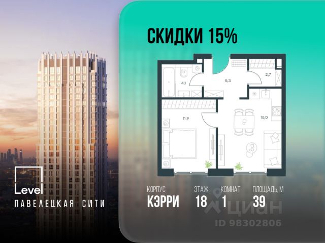 1-к квартира квартира в премиальном комплексе HIGH LIFE на 5-м этаже в 39 этажном здании. Общая площадь 35.7 кв. м. HIGH LIFE - премиальный проект компании PIONEER, расположенный в 5 минутах от Садового кольца, вблизи исторического Замоскворечья. Авторская архитектура от бюро ADM. Панорамные окна и изящные эркеры открывают виды на Кремль, МГУ, Москва-Сити, Дом Музыки и набережные реки. 70% видовых квартир. Инфраструктура и сервис отеля 5*: • Дизайнерские лобби от Jaime Beriestain Studio • Частный кинозал • Библиотека с камином • Двухуровневый двор-парк 2 га с хвойным лесом и террасами • Залы для йоги и занятий спортом • Массажный кабинет, SPA и бьюти-зоны • Консьерж-сервис Технологии и инженерия: • Центральная система кондиционирования • Дополнительная вентиляция помещений • Буферная мусорокамера • Обеззараживание воздуха • Мониторинг качества воды с дополнительной доочисткой • Дополнительная шумоизоляция • Автоматизированная система передачи данных в УК Системы безопасности: • Датчики движения • Круглосуточное наблюдение • Система доступа с распознаванием лиц • Приложение для наблюдения за квартирой • Система пожарного обнаружения • Датчики дыма и протечек За 24 года на рынке недвижимости компания PIONEER реализовала более 30 проектов. Сегодня PIONEER - девелопер премиальной недвижимости с 4 проектами класса премиум и deluxe. Звоните, и мы с удовольствием расскажем все подробности о нашем замечательном проекте и условиях покупки. Продажа от застройщика.