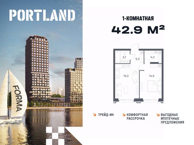 Цены указаны с условием 100% оплаты и стандартной ипотеки. Продаётся 1-к. квартира, 9 этаж в жилом комплексе бизнес-класса Portland от девелопера FORMA. ЖК расположен на берегу Москвы-реки в северной части района Печатники в акватории Южного речного порта. Основные преимущества проекта: • Самая протяженная береговая линия реки в Москве 13 км. • Вид на реку в сторону запада панорамные окна на самое широкое водное пространство Москва-реки (900 м) и на закат. • 95% квартир с видом на воду. • К Portland не примыкает крупных автомагистралей - отсутствие фонового шума дорог. • В перспективе ближайших 11 лет на территории района запланировано грандиозное преобразование и комплексное развитие. • Собственная набережная длиной 412 м., которая после завершения строительства сомкнется с эко-парком Печатники. • Прямой выход к воде и отсутствие проезжей части между Portland и береговой линией. • Инфраструктурное разнообразие: супермаркеты, крупные торговые центры, рестораны, кафе, фитнес-клубы, бьюти-салоны, компании сферы услуг и многое другое. • Собственная школа на 300 мест и детский сад на 275 мест. • Паркинг на 650 м/м • Транспортная вседоступность: метро, авто, велосипед, речной трамвай, канатная дорога • 15 мин. пешком до м. Печатники, 15 мин. на авто до ТТК, 20 минут на авто до Садового кольца