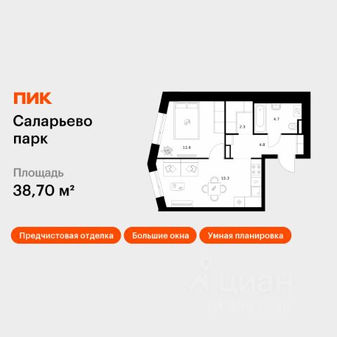 Продаётся 1-комн. квартира площадью 45,1 кв.м на 3 этаже 23 этажного дома (Корпус 69.1, Секция 1) проекта ПИК Саларьево парк. Светлый просторный подъезд на уровне земли, функциональная планировка, большие окна, предчистовая отделка. Жилой район "Саларьево парк" расположен в Новой Москве, в четырёх километрах от МКАД по Киевскому шоссе. Две станции метро: "Саларьево" и "Филатов луг", — находятся в пешей доступности от проекта. Дойти до них можно за 510 минут. В квартале уже создана качественная среда, где есть абсолютно всё для полноценной жизни, работы и отдыха. Благодаря удобному расположению проекта всё важное будет рядом: детские сады, школы, кафе и рестораны, шопинг в торговых центрах, фитнес и даже аэропорт. Все корпуса в квартале гармонично сочетаются, образуя единую городскую среду. Между собой их объединяет невысокая этажность и натуральная цветовая гамма. Здесь приятно гулять и проводить время на улице всей семьёй. В "Саларьево парке" создана уникальная образовательная среда, включающая в себя шесть школ, рассчитанных на 6 250 учеников. Две из них уже открыты, их посещает 2 300 детей. Также на территории "Саларьево парка" находится 12 детских садов, один из которых с бассейном. Сейчас уже открыты 7 садов. В "Саларьево парке" открыта уникальная игровая площадка — PlayHub "Оригами". Здесь есть ручей, горка-труба и рельефные холмы. Взрослые смогут отдохнуть в уютном кафе, пока дети играют. Также на территории проекта есть SportHub — большая спортивная зона, разделённая по интересам и возрастам. Здесь можно заниматься разными видами спорта: футболом, баскетболом, волейболом и стритболом. Зимой центральную часть площадки превращают в каток. Во дворах-парках жилого квартала есть места для отдыха, детские и спортивные площадки. На первых этажах домов расположены магазины, кафе и полезные сервисы. Также вблизи проекта есть несколько масштабных торговых центров. До ТЦ "Саларис" пять минут пешком, до "Рио", Metro Cash & Carry и "Леруа Мерлен" — пять минут на автомобиле. Артикул 1023194 (Застройщик ООО "Специализированный Застройщик "Тирон")