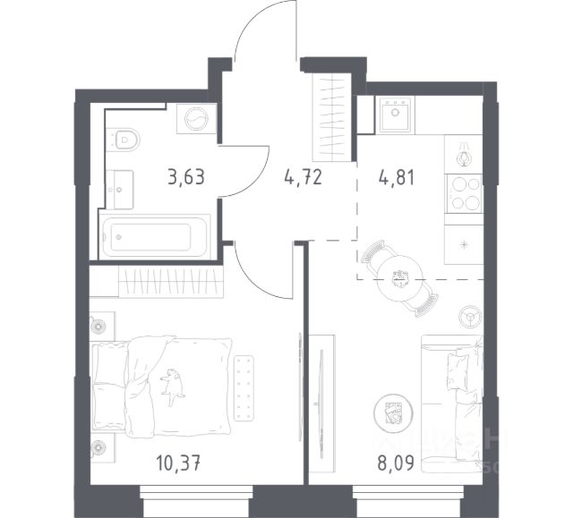 В продаже 1-комнатная квартира в корпусе 2 ЖК 'Квартал Строгино'. Квартира располагается на 8 этаже, общая площадь 41.5 м2.