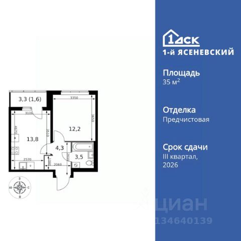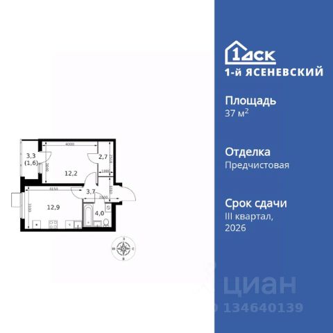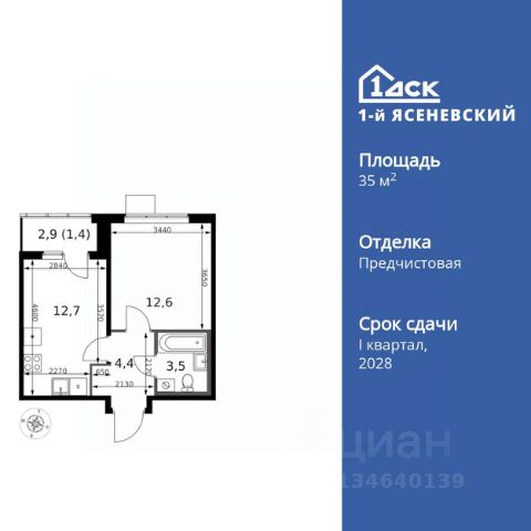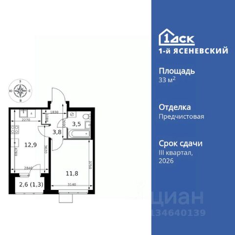 Прямая продажа от застройщика! Жилой Комплекс класса Комфорт Плюс. Продаётся 1-к квартира номер 623 общей площадью 33.9 кв.м. на 3-м этаже 18 этажного здания. Предчистовая отделка. Цена с учётом скидки. Особенности квартиры: - Квартиры рядом с метро - м. Корниловская 9 мин пешком - 63 га лесопарка за окнами - Школа c ИТ-кластером и бассейном. 2 детских сада - Организуем показ в удобное для вас время! - Мастер-зона с гардеробной. Просторное место для отдыха и удобного хранения вещей. - Линейная планировка - максимальная функциональность и удобство. - Можно оборудовать рабочее место - комфорт для работы и учёбы. - Линейная кухня - функциональность и практичность в одном решении. - Гардеробная - удобство для хранения и организации вещей. - Ниша под шкаф - компактное и удобное место для вещей. - Лоджия - уютное место для отдыха и тишины. Квартира с предчистовой отделкой. Вам не придется заниматься черновыми и трудоёмкими работы, а чистовую отделку и дизайн - сделайте на свой вкус. Информация о комплексе: ЖК "1-й Ясеневский": преимущества городской инфраструктуры и природы. Пешая доступность к метро, школе с бассейном и ИТ-кластеру, а также 63 га Троицкого лесопарка под окнами. Закрытая территория с бульварами, велодорожками, кафе и дворами без машин. Фруктовые деревья и городские сады создают уникальную атмосферу. Всего в 1 км от МКАД - идеальный баланс для современной жизни. Транспортная доступность: До метро "Корниловская" - 12 минут пешком До метро "Тютчевская" - 25 минут пешком До метро "Теплый стан" - 10 минут на транспорте До метро "Ольховая" - 30 минут на общественном транспорте Личный автотранспорт: Выезд на Калужское шоссе - 500 м МКАД - 1 км Внутренняя инфраструктура: ЖК "1-й Ясеневский" - идеальное место для семей с детьми. Рядом Троицкий лесопарк для прогулок, а во дворах - современные детские площадки, разработанные с участием психологов. В шаговой доступности два детских сада и школа на 1100 мест с ИТ-кластером, бассейном и классами робототехники. Всё для счастливого детства и успешного будущего. Квартира с предчистовой отделкой - ваш дизайн без черновых работ