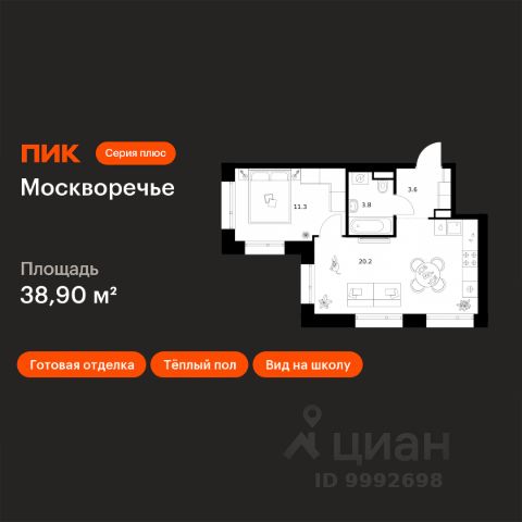 В районе Москворечье-Сабурово продается 1-комнатная квартира площадью 39.24 м². Она расположена на 6 этаже в 261 корпусе нового жилого квартала LIFE Варшавская. Площадь комнат: гостиная — 9,32 м² спальня — 11,47 м² кухня — 5,76 м² ванная — 4,06 м² В LIFE Варшавская мы создали идеальные условия для жизни молодых людей и семей с детьми, тинейджеров и спортсменов, домохозяек и бизнесменов. Жилой квартал LIFE Варшавская удачно расположен: 5 минут до станции "Варшавская" 10 минут до станции "Каширская" 18-25 минут до парка-усадьбы "Коломенское", Битцевского леса и музея-заповедника "Царицыно" Богатая инфраструктура — это визитная карточка проекта. На территории работают детский сад на 160 мест и школа на 900 мест с IT-полигоном и мультифункциональным спортивным стадионом. В квартале разместились пешеходный бульвар, игровой плейхаб "Змейка", спортивный кластер с полями для футбола и волейбола, площадка для выгула животных. На первых этажах жилых домов открыты магазины, кафе и рестораны, салоны красоты, арт-галереи, сервисы бытовых услуг, медицинские центры. Концепция жилого квартала создана ведущими архитектурными бюро. Структуры малоэтажных кварталов дополняются высотными башнями-доминантами. Такой тип застройки позволил сформировать освещенную приватную территорию.