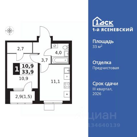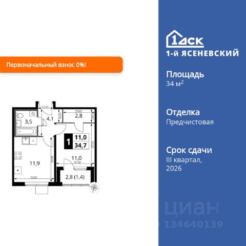 Прямая продажа от застройщика! Жилой Комплекс класса Комфорт Плюс. Продаётся 1-к квартира номер 142 общей площадью 34.3 кв.м. на 5-м этаже 16 этажного здания. Отделка Whitebox. Особенности квартиры: - Квартиры рядом с метро - м. Корниловская 9 мин пешком - 63 га лесопарка за окнами - Школа c it-кластером и бассейном. 2 детских сада - Мастер-зона с гардеробной. Просторное место для отдыха и удобного хранения вещей. - Линейная планировка - максимальная функциональность и удобство. - Гибкая планировка - создайте пространство по своему вкусу. - Можно оборудовать рабочее место - комфорт для работы и учёбы. - Гардеробная - удобство для хранения и организации вещей. - Ниша под шкаф - компактное и удобное место для вещей. Квартира с предчистовой отделкой (White box). Вам не придется заниматься черновыми и трудоёмкими работы, а чистовую отделку и дизайн - сделайте на свой вкус. Информация о комплексе: В жилом комплексе комфорт-плюс класса "1-го Ясеневского" доступны преимущества двух стилей жизни. Ведь в пешей доступности метро, школа с 25-метровым бассейном и IT-кластером и при этом целых 63 га благоустроенного Троицкого лесопарка под окнами, где так приятно дышать свежим воздухом и слушать пение птиц. Собственная закрытая территория "1-го Ясеневского" представляет собой уютный оазис. Здесь и зеленый освещенный бульвар для прогулок, система велодорожек, маленькая городская площадь, кафе, пекарни и кофе поинты. А еще дворы без машин и многоэтажная парковка. Изюминка территории - фруктовые деревья во дворах и городские сады. "1-й Ясеневский" - всего в 1 км от МКАД, на территории новой Москвы. Жилой комплекс, где есть все необходимое для современного человека. Транспортная доступность: До метро "Корниловская" - 12 минут пешком До метро "Тютчевская" - 25 минут пешком До метро "Теплый стан" - 10 минут на транспорте До метро "Ольховая" - 30 минут на общественном транспорте Личный автотранспорт: Выезд на Калужское шоссе - 500 м МКАД - 1 км Внутренняя инфраструктура: ЖК "1-й Ясеневский" можно назвать идеальным местом для жизни семьи с детьми. Здесь буквально за домом находится Троицкий лесопарк - излюбленное место прогулок молодых родителей. А во внутренних дворах под детские площадки выделены специальные зоны. Они оборудованы всем, что нужно для счастливого детства: современными и максимально безопасными качелями, песочницами и лазалками. Оборудование и игровые сценарии на детских площадках спроектированы вместе с командой детских психологов для правильного развития ребенка и для повышения их интереса. Также рядом с домом два детских садика, один из которых уже построен и школа на 1100 мест. Школу по праву можно назвать образцовым учебным заведением. В ней закладываются основы успешного будущего. Здесь есть класс робототехники, IT-кластер, 25-метровый бассейн и прекрасно оборудованные спортзалы.