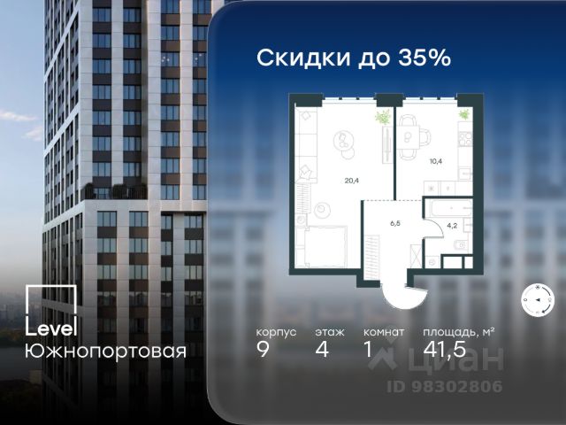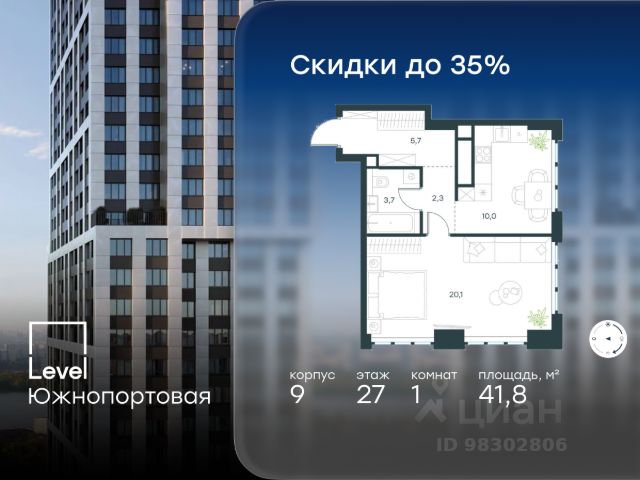 В северной части района Печатники продается 1-комнатная квартира площадью 41.80 кв.м с отделкой white box. Квартира расположена на 2 этаже 49-этажного корпуса 9 в жилом комплексе комфорт-класса Level Южнопортовая (компания Level Group/Левел групп).