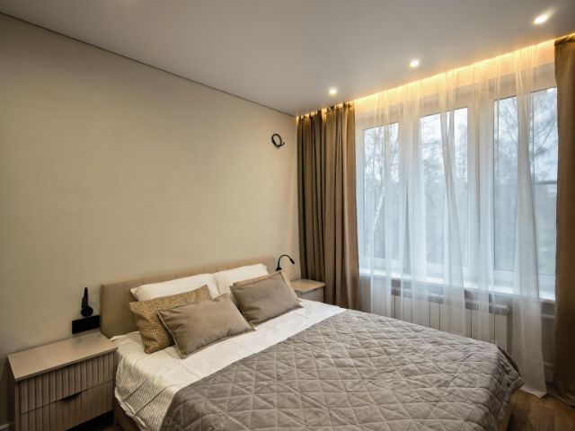 Площадь квартиры и удобная планировка позволяют удобно разместить спальную, гостиную и рабочую зоны, зону кухни.