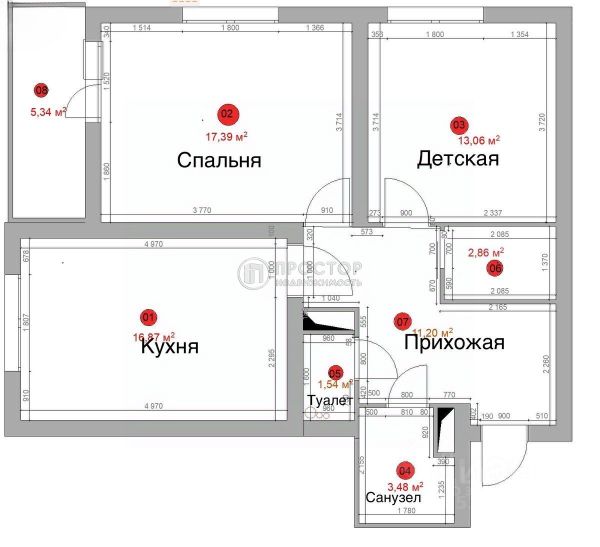 Площадь 55,4 м² позволяет грамотно организовать пространство: