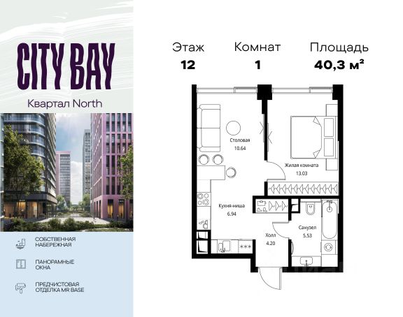 Прямая продажа от застройщика. Продаётся 1-комнатная квартира общей площадью 40.98 м² с предчистовой отделкой в ЖК City Вау, квартале North, на 12-м этаже 27 этажного дома. Концепция жилого комплекса City Вау - настоящий город в городе с отлично развитой инфраструктурой и собственной благоустроенной набережной. На территории жилого комплекса расположено пять кварталов - Atlantic, Pacific, Indian, North, Cliff. Жилой квартал City Вау отличается оригинальной концепцией и выделяется среди других проектов такими характеристиками как: - Архитектура, - Виды из окон, - Природное окружение, вызывая гордость у жителей и восхищение у прохожих. Вся жизнь района Покровское-Стрешнево строится вокруг водных объектов: - Пойма реки Сходни с уникальной экосистемой, - Речка Химка и Химкинское водохранилище, - Москва-река, - Канал имени Москвы. Кругом вода, и местные с удовольствием этим пользуются. А сразу за рекой - центр водного спорта в Строгино с вейк-парком и яхт-клубами. Помимо воды, здесь очень много зелени: - Рядом Сходненский ковш памятник природы, естественный амфитеатр глубиной 40 метров; - Парк при усадьбе Братцево с фруктовым садом; - Дубовая роща "Маяк", - Алешкинский лес; - Лесопарк Покровское-Стрешнево с пляжами и бобрами. Главные транспортные артерии района: - Волоколамское шоссе, - Таганско-Краснопресненская линия метро и МЦД-2. Всего за 20 минут можно добраться до центра на машине или метро, а МЦД связывает ЖК City Вау с северными, восточными и юго-восточными районами. Компания MR предлагает своим клиентам специальные условия приобретения квартир в рамках программ ипотечного кредитования от банков-партнеров.