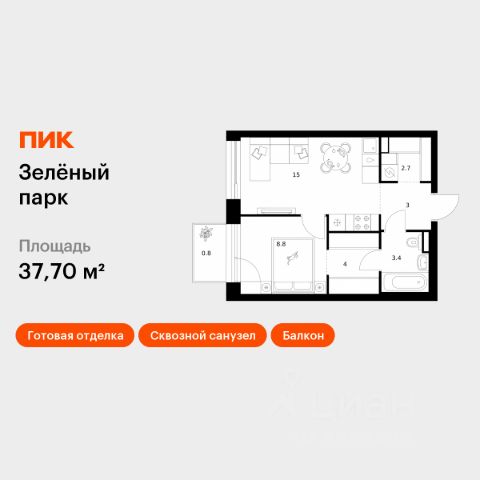 Продаётся 1-комн. квартира площадью 30,6 кв.м на 8 этаже 14 этажного дома (Корпус 5.1, Секция 2) проекта ПИК Зелёный парк. Светлый просторный подъезд на уровне земли, функциональная планировка, большие окна, предчистовая отделка. Большой квартал с оригинальной архитектурой в обжитом районе Зеленограда. От него до станции МЦД-3 "Зеленоград-Крюково" — 20 минут пешком, до Кутузовского шоссе можно доехать на машине за 3 минуты, а до Пятницкого шоссе — за 5 минут. Характер "Зелёного парка" отражён в архитектуре. Квартал состоит из уютных разноэтажных блоков с оригинальными акцентами. Цветовая палитра проекта спокойная и сдержанная: оттенки белого и коричневого сочетаются с пастельным розовым и мятным. В проекте запланированы также два детских сада, две школы и паркинг. На первых этажах откроются магазины, кафе и другие сервисы — чтобы купить кофе и свежий хлеб к завтраку, можно будет просто спуститься на лифте. В уютных дворах-парках появятся места для отдыха, детские площадки, кофейни и зоны отдыха. Рядом — Зеленоградский лес, Парк Победы и Михайловский пруд, где можно гулять и заниматься спортом. У жителей "Зелёного парка" будет возможность получить московскую прописку. Для любителей спорта в 10 минутах пешком от квартала — велодром с трассой, физкультурно-оздоровительный комплекс Горизонт, а также лыжероллерная трасса длиной около 3 км. Артикул 1061020 (Застройщик АО "СПЕЦИАЛИЗИРОВАННЫЙ ЗАСТРОЙЩИК "ЗЕЛЕНОГРАДСКИЙ")