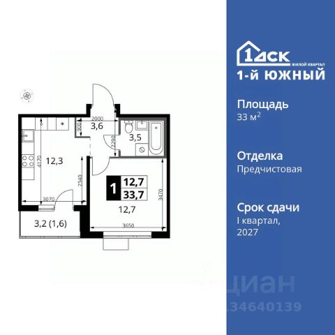 ДОПОЛНИТЕЛЬНАЯ СКИДКА ДО 10% В ОФИСЕ ПРОДАЖ! Прямая продажа от застройщика! Жилой Комплекс класса Комфорт Плюс. Продаётся 1-к квартира номер 803 общей площадью 33.7 кв.м. на 24-м этаже 24 этажного здания. Отделка Whitebox. Особенности квартиры: - МЦД-5 в пешей доступности - Квартал с южным садом - Свои 3 детских сада и 2 большие школы - Линейная планировка - максимальная функциональность и удобство. - Увеличенная высота потолков - ощущение простора и легкости. - Ниша под шкаф - компактное и удобное место для вещей. - Лоджия - уютное место для отдыха и тишины. Квартира с предчистовой отделкой (White box). Вам не придется заниматься черновыми и трудоёмкими работы, а чистовую отделку и дизайн - сделайте на свой вкус. Информация о комплексе: Одно из преимуществ проектов 1- ДСК большие застекленные лоджии. Другое преимущество честный евро-формат. Во всем проекте предусмотрена система Умный дом. В состав устанавливаемого пакета устройств входит: WiFi реле для управления группами потребителей, беспроводной кран перекрытия с эл. приводом, беспроводной сенсор протечки, Яндекс Станция Мини. Его расположение можно назвать удачным за счет транспортной доступности и близости к природным объектам. По соседству лес, а в каждом дворе плодовые деревья. Весной квартал окутывает бело-розовое облако: это цветут яблони, груши, сливы. К августу в воздух наполняется ароматом созревших плодов. Зимой среди покрытых инеем деревьев протянулась лыжня. Транспортная доступность: - Общественный транспорт: Действующая ж/д станция Булатниково (в перспективе будущая МДЦ D5) в пешей доступности, всего 10-12 минут. - Личный автотранспорт: Удобный выезд на трассу М4-Дон в сторону Москвы и области 850 м, до МКАД - 1 км Внутренняя инфраструктура: Красивые продуманные подъезды - еще одно преимущество проекта 1-й Южный. Вход в сквозные подъезды есть и с улицы, и со двора. Благодаря сплошному остеклению в них всегда светло и уютно. Подъезды расположены на уровне земли, поэтому и молодым родителям с коляской, и жильцам с ограниченными возможностями вход и выход неудобств не доставят. В помещении предусмотрено место под стойку ресепшен с выводом инженерных сетей. Если жильцы решат на общем собрании, что необходим охранник или консьерж, организовать для них рабочее место можно быстро и с минимальными затратами. В подъездах предусмотрены уборные для детей и взрослых. Колясочные в каждом подъезде позволяют поддерживать порядок и чистоту на этажах. На случай прогулки с четвероногим питомцем в непогоду в подъездах устроены лапомойки. Во дворах и на общественных территориях 1-ого Южного столько всего интересного для юных обитателей. Собственные 3 детских сада и 2 больших школы буквально под окнами Изюминка проекта - пешеходный бульвар-дендрарий, он идеален для семейных прогулок. По сторонам прогулочной зоны разместились точки для самых разнообразных активностей. Центральная площадь на бульваре предназначена для проведения всесезонных мероприятий, объеди