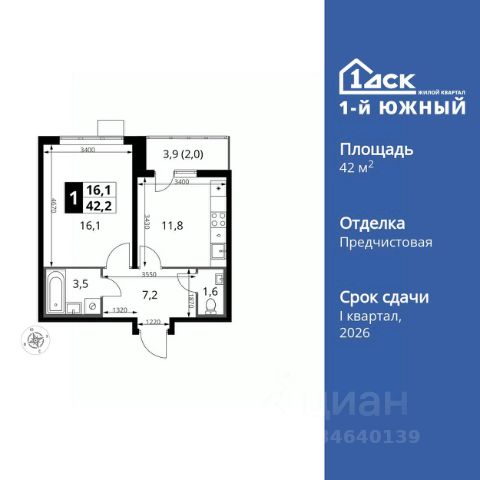 ДОПОЛНИТЕЛЬНАЯ СКИДКА ДО 10% В ОФИСЕ ПРОДАЖ! Прямая продажа от застройщика! Жилой Комплекс класса Комфорт Плюс. Продаётся 1-к квартира номер 170 общей площадью 42.2 кв.м. на 20-м этаже 25 этажного здания. Отделка Whitebox. Особенности квартиры: - МЦД-5 в пешей доступности - Квартал с южным садом - Свои 3 детских сада и 2 большие школы - Линейная планировка - максимальная функциональность и удобство. - Раздельный санузел - больше удобства для всех членов семьи. - Линейная кухня - функциональность и практичность в одном решении. - Лоджия - уютное место для отдыха и тишины. Квартира с предчистовой отделкой (White box). Вам не придется заниматься черновыми и трудоёмкими работы, а чистовую отделку и дизайн - сделайте на свой вкус. Информация о комплексе: Одно из преимуществ проектов 1- ДСК большие застекленные лоджии. Другое преимущество честный евро-формат. Во всем проекте предусмотрена система Умный дом. В состав устанавливаемого пакета устройств входит: WiFi реле для управления группами потребителей, беспроводной кран перекрытия с эл. приводом, беспроводной сенсор протечки, Яндекс Станция Мини. Его расположение можно назвать удачным за счет транспортной доступности и близости к природным объектам. По соседству лес, а в каждом дворе плодовые деревья. Весной квартал окутывает бело-розовое облако: это цветут яблони, груши, сливы. К августу в воздух наполняется ароматом созревших плодов. Зимой среди покрытых инеем деревьев протянулась лыжня. Транспортная доступность: - Общественный транспорт: Действующая ж/д станция Булатниково (в перспективе будущая МДЦ D5) в пешей доступности, всего 10-12 минут. - Личный автотранспорт: Удобный выезд на трассу М4-Дон в сторону Москвы и области 850 м, до МКАД - 1 км Внутренняя инфраструктура: Красивые продуманные подъезды - еще одно преимущество проекта 1-й Южный. Вход в сквозные подъезды есть и с улицы, и со двора. Благодаря сплошному остеклению в них всегда светло и уютно. Подъезды расположены на уровне земли, поэтому и молодым родителям с коляской, и жильцам с ограниченными возможностями вход и выход неудобств не доставят. В помещении предусмотрено место под стойку ресепшен с выводом инженерных сетей. Если жильцы решат на общем собрании, что необходим охранник или консьерж, организовать для них рабочее место можно быстро и с минимальными затратами. В подъездах предусмотрены уборные для детей и взрослых. Колясочные в каждом подъезде позволяют поддерживать порядок и чистоту на этажах. На случай прогулки с четвероногим питомцем в непогоду в подъездах устроены лапомойки. Во дворах и на общественных территориях 1-ого Южного столько всего интересного для юных обитателей. Собственные 3 детских сада и 2 больших школы буквально под окнами Изюминка проекта - пешеходный бульвар-дендрарий, он идеален для семейных прогулок. По сторонам прогулочной зоны разместились точки для самых разнообразных активностей. Центральная площадь на бульваре предназначена для проведения всесезонных меропри