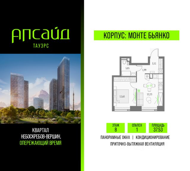 Продаётся 1-комнатная квартира площадью 44.09 кв.м на 34 этаже 46 этажного корпуса Монте Бьянко в квартале небоскребов "Апсайд Тауэрс". В квартире предчистовая отделка, с видом на Внутренний двор, корпус Эверест , Ландшафтный парк, Центр, Москва-Сити. Номер квартиры Г3406. На первых этажах корпуса Монте Бьянко разместятся: фитнес студия, салон красоты, центр превентивной медицины, образовательные классы, книжный магазин, аптека, фермерская лавка, а также келлеры для хранения сезонных вещей. В приватном закрытом дворе разместятся разнообразные площадки для прогулок, игр и отдыха. Визитной карточкой двора станет уникальная биометрическая игровая пещера со сказочными тоннелями, горками и космическими "мягкими" камнями с неизведанных планет. Планету Земля дети смогут исследовать в павильоне круглый год: объемная крыша укроет от солнца и дождя. Игровая пещера будет реализована в стиле "эмоциональная архитектура". "Апсайд Тауэрс" - технологичный квартал строится в динамично развивающемся Бутырском районе, в 3 мин. от метро, в 5 мин. от ТТК. На территории 7 га возводится 5 высотных башен от 19 до 58 этажей, названных в честь главных вершин земли. Квартиры с панорамными окнами в пол, высокими потолками и современными инженерными решениями. В проекте: - приточновытяжная вентиляция (воздух по качеству не уступает горному); - пятиступенчатая очистка воды с сохранением полезных минералов; - центральное кондиционирование; - внутрипольные конвекторы; - системы безопасности и мониторинга микроклимата; - высокоскоростной интернет на всей территории; - подземный паркинг с зарядками для электрокаров. Социальная инфраструктура: - Upside Клуб (более 2 000 м²) — спацентр на 47м этаже башни "Атлас" (джакузи, сауна, залы для релаксации и йоги), барбекюпатио, гостиная с камином и роялем, коворкинг, переговорные, домашний кинотеатр и др.; - смотровые террасы с видами на город, парки, Останкинскую башню, ВДНХ, Ботанический сад и МосквуСити; - ландшафтный парк 2,5 га с сенсорным садом, игровыми и спортивными площадками; - государственная школа и детский сад; - более 15 000 м² коммерческой инфраструктуры. Бутырский район развивается и станет новым деловым районом Москвы. По программе "Индустриальные кварталы" на территории Огородного проезда построят образовательные и спортивные учреждения, торговые центры, кафе, банки и общественноделовые здания. Рядом — Парк Останкино, ВДНХ, Сокольники, Гончаровский парк, дизайнзавод Flacon и "Хлебозавод". До центра Москвы на авто — 15 мин. Застройщик: ООО "СЗ "КДевелопмент" (Upside Девелопмент).