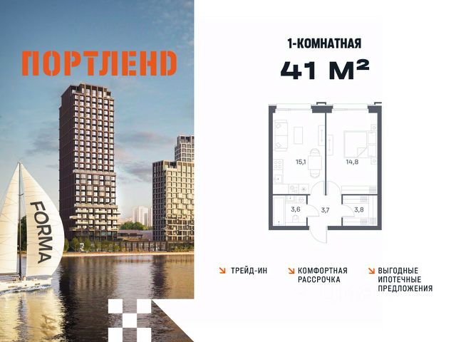 Цены указаны с условием 100% оплаты и стандартной ипотеки. Продаётся 1-к. квартира, 24 этаж в жилом комплексе бизнес-класса ПОРТЛЕНД от девелопера FORMA. ЖК расположен на берегу Москвы-реки в северной части района Печатники в акватории Южного речного порта. Основные преимущества проекта: • Самая протяженная береговая линия реки в Москве 13 км. • Вид на реку в сторону запада панорамные окна на самое широкое водное пространство Москва-реки (900 м) и на закат. • 95% квартир с видом на воду. • К ПОРТЛЕНД не примыкает крупных автомагистралей - отсутствие фонового шума дорог. • В перспективе ближайших 11 лет на территории района запланировано грандиозное преобразование и комплексное развитие. • Собственная набережная длиной 412 м., которая после завершения строительства сомкнется с эко-парком Печатники. • Прямой выход к воде и отсутствие проезжей части между ПОРТЛЕНД и береговой линией. • Инфраструктурное разнообразие: супермаркеты, крупные торговые центры, рестораны, кафе, фитнес-клубы, бьюти-салоны, компании сферы услуг и многое другое. • Собственная школа на 300 мест и детский сад на 275 мест. • Паркинг на 650 м/м • Транспортная вседоступность: метро, авто, велосипед, речной трамвай, канатная дорога • 15 мин. пешком до м. Печатники, 15 мин. на авто до ТТК, 20 минут на авто до Садового кольца Продается 1-комнатная квартира с евроремонтом в районе Печатники в Москве.