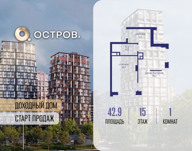Продаем сами, по всем вопросам звоните или лучше приезжайте. По оценкам сторонних экспертов Остров один из наиболее перспективных и лучших жк в Москве по показателям: расположение, качество,экология, инфраструктура.