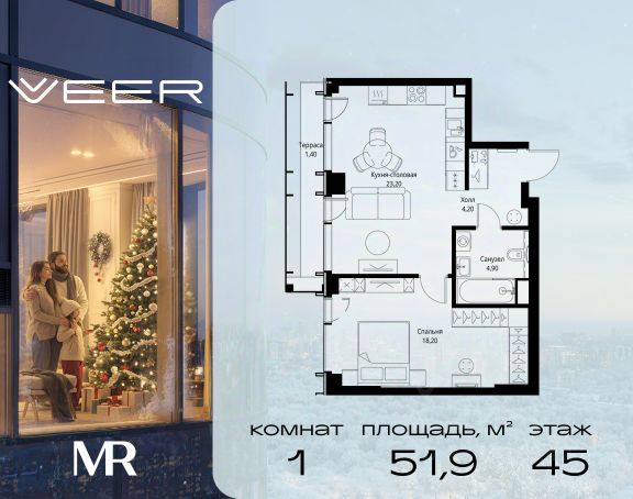 Прямая продажа от застройщика. Продаётся 1-комнатная квартира общей площадью 34 м² с предчистовой отделкой в ЖК VEER на 57-м этаже 59 этажного дома. Жилой комплекс бизнес-класса VEER от компании MR — это футуристичный мультиквартал, расположенный в престижной локации на западе Москвы. Благодаря переменной высоте башен — двух 22-этажных, 46-этажной и двух 59-этажных — возникает динамичность в силуэте комплекса, а его яркий образ вносит разноплановость в архитектурный пейзаж района. Расположение и транспортная доступность: • VEER удобно расположен в непосредственной близости от Кутузовского проспекта, обеспечивая быстрый доступ к центральным районам Москвы • Комплекс находится непосредственно напротив самого большого природного заказника в Москве - парка "Долина реки Сетунь", а за семь минут можно доехать до памятника садово-паркового искусства, Троекуровского леса. • Всего в 15 минутах - центр города, самая престижная бизнес-школа управления России "Сколково", дом творчества "Переделкино". • 18 минут пешком до м. "Давыдково" • Открытие новых станций метро в шаговой доступности в будущем Инфраструктура: Разнообразить свой день резиденты VEER смогут также проводя больше времени на свежем воздухе. Двор разделен на 4 зоны разных эмоций и действий, которые пересечены и соединены веерными прогулочными маршрутами: • Спортивная площадка устроена в глубине "Кленовой рощи" • В "Чайном домике" будет создан навес с утеплением для отдыха в любую погоду • Площадки для детей воплотятся в "Волшебный лес" с цветами, зеркалами и световым дизайном • "Центральная площадь" устроена у водного оазиса живописного пруда. Компания MR предлагает своим клиентам специальные условия приобретения квартир в рамках программ ипотечного кредитования от банков-партнеров. Продается 1-комнатная квартира с евроремонтом на улице Верейская в Москве.