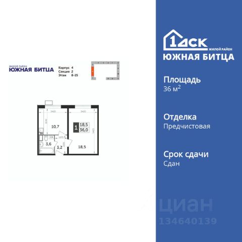 Прямая продажа от застройщика! Жилой Комплекс класса Комфорт Плюс. Продаётся 1-к квартира номер 9 общей площадью 35.7 кв.м. на 2-м этаже 8 этажного здания. Отделка Whitebox. Цена с учётом скидки. Особенности квартиры: - Квартиры рядом с метро - м. Корниловская 9 мин пешком - 63 га лесопарка за окнами - Школа c it-кластером и бассейном. 2 детских сада - Линейная планировка - максимальная функциональность и удобство. - Можно оборудовать рабочее место - комфорт для работы и учёбы. - Ниша под шкаф - компактное и удобное место для вещей. - Лоджия - уютное место для отдыха и тишины. Квартира с предчистовой отделкой (White box). Вам не придется заниматься черновыми и трудоёмкими работы, а чистовую отделку и дизайн - сделайте на свой вкус. Информация о комплексе: В жилом комплексе комфорт-плюс класса "1-го Ясеневского" доступны преимущества двух стилей жизни. Ведь в пешей доступности метро, школа с 25-метровым бассейном и IT-кластером и при этом целых 63 га благоустроенного Троицкого лесопарка под окнами, где так приятно дышать свежим воздухом и слушать пение птиц. Собственная закрытая территория "1-го Ясеневского" представляет собой уютный оазис. Здесь и зеленый освещенный бульвар для прогулок, система велодорожек, маленькая городская площадь, кафе, пекарни и кофе поинты. А еще дворы без машин и многоэтажная парковка. Изюминка территории - фруктовые деревья во дворах и городские сады. "1-й Ясеневский" - всего в 1 км от МКАД, на территории новой Москвы. Жилой комплекс, где есть все необходимое для современного человека. Транспортная доступность: До метро "Корниловская" - 12 минут пешком До метро "Тютчевская" - 25 минут пешком До метро "Теплый стан" - 10 минут на транспорте До метро "Ольховая" - 30 минут на общественном транспорте Личный автотранспорт: Выезд на Калужское шоссе - 500 м МКАД - 1 км Внутренняя инфраструктура: ЖК "1-й Ясеневский" можно назвать идеальным местом для жизни семьи с детьми. Здесь буквально за домом находится Троицкий лесопарк - излюбленное место прогулок молодых родителей. А во внутренних дворах под детские площадки выделены специальные зоны. Они оборудованы всем, что нужно для счастливого детства: современными и максимально безопасными качелями, песочницами и лазалками. Оборудование и игровые сценарии на детских площадках спроектированы вместе с командой детских психологов для правильного развития ребенка и для повышения их интереса. Также рядом с домом два детских садика, один из которых уже построен и школа на 1100 мест. Школу по праву можно назвать образцовым учебным заведением. В ней закладываются основы успешного будущего. Здесь есть класс робототехники, IT-кластер, 25-метровый бассейн и прекрасно оборудованные спортзалы.