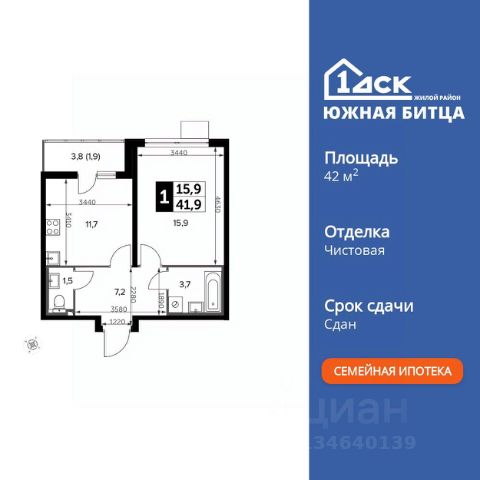 Прямая продажа от застройщика! Семейный жилой район класса Комфорт Плюс Продаётся 1-к квартира номер 561 общей площадью 25.2 кв.м. на 9-м этаже 22 этажного здания. Предчистовая отделка. Особенности квартиры: - Организуем показ в удобное для вас время! - Линейная планировка - максимальная функциональность и удобство. - Евроформат - просторное и удобное жилье с отличной планировкой. - Ниша под шкаф - компактное и удобное место для вещей. - Лоджия - уютное место для отдыха и тишины. Квартира с предчистовой отделкой. Вам не придется заниматься черновыми и трудоёмкими работы, а чистовую отделку и дизайн - сделайте на свой вкус. Информация о комплексе: ЖК "Южная Битца": безопасная территория без машин с продуманным зонированием. Тихие и игровые зоны разделены, дворы - безбарьерная среда для всех возрастов. Современные лифты и кладовые для порядка и уюта. Транспортная доступность: В 3 км от МКАД в нескольких минутах езды до трех станций метро: Аннино, Бульвар Дмитрия Донского, улица Старокочаловская и станции МЦД2 - ЖД Бутово. Внутренняя инфраструктура: Для жителей жилого района "Южная Битца" доступна развитая инфраструктура близлежащих московских районов Чертаново, Южное, Бирюлёво Западное, Северное Бутово и Южное Бутово. Множество образовательных учреждений, объекты здравоохранения, торговые и развлекательные центры, кинотеатры, кафе, рестораны, парки.