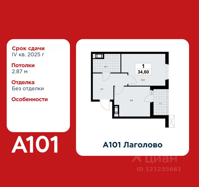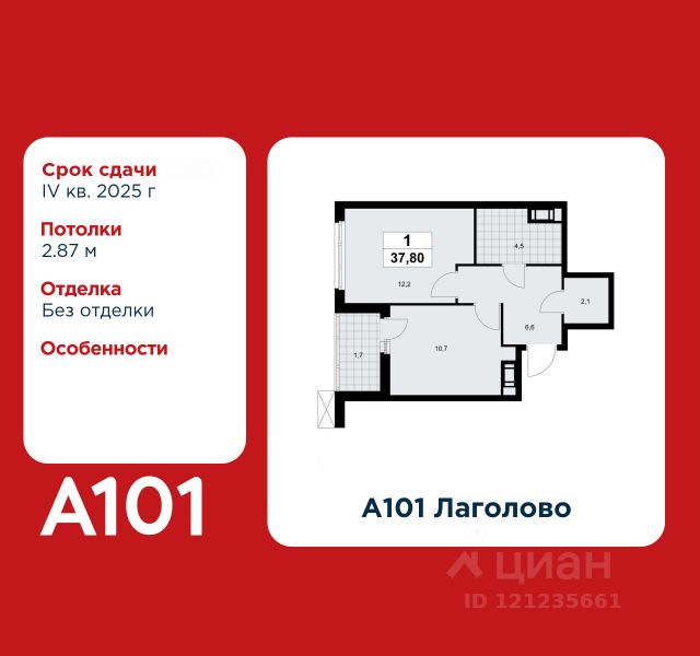 ПЕРЕУСТУПКА ПРАВА! Продаётся квартира в новостройке — ЖК "Лаголово" , корп. 1.1 Общая площадь квартиры — 37,8 кв. м., этаж 3 из 9, секция 1 Без отделки Тип проекта, по которому построен дом — монолит Компания-застройщик — ГК "А101". Стоимость квартиры — 4 900 000 руб. Срок сдачи — 4-й квартал 2025 ПАРАДНАЯ В каждой парадной предусмотрены места для хранения велосипедов и колясок, гостевой санузел, лапамойка (место для мытья домашних животных или колес велосипедов) и удобная зона ожидания для гостей. ДВОРЫ И ОКРУЖЕНИЕ Просторные дворы свободны от машин и закрыты от посторонних. Большую часть комплекса займут благоустроенные зелёные зоны, теневые сады и городские общественные пространства с развитой тротуарной сетью и велодорожками. Каждый дом оборудован системами видеонаблюдения и контроля доступа. "А101 Лаголово" - современный город у подножия знаменитых Дудерговских высот, в объятиях чистейших озёр и зелёных живописных массивов, наполненный всем необходимым для счастливой жизни. ИНФРАСТРУКТУРА. Мы занимаемся комплексным освоением территории. Наш приоритет - доступность всех сервисов для счастливой жизни. 1. Лаголово-город 15-ти минутной доступности. Вся необходимая инфраструктура: магазины, салоны красоты, образовательные учреждения, медицинские центры находятся в 15-ти минутах пешей прогулки от любой точки жилого комплекса. Это позволяет не тратить время на долгие перемещения. 2. Представьте идеальный город, где ребенок может спокойно играть, а пожилой человек наслаждаться заслуженным отдыхом. Жилая среда нашего комплекса может комфортно использоваться как 8-летним ребенком, так и 80-летним пожилым человеком. Дома, улицы, общественные пространства, тротуары спроектированы с заботой о людях разных возрастов. 3. Мы активно развиваем авторскую образовательную экосистему "Лёрнити". Она включает строительство 8 современных детских садов (2000 мест) и 3 школ (2945 учащихся). Мы учим родителей гармонично общаться с детьми, помогаем малышам подготовиться к школе, а подросткам - выбрать будущую профессию и развить таланты.