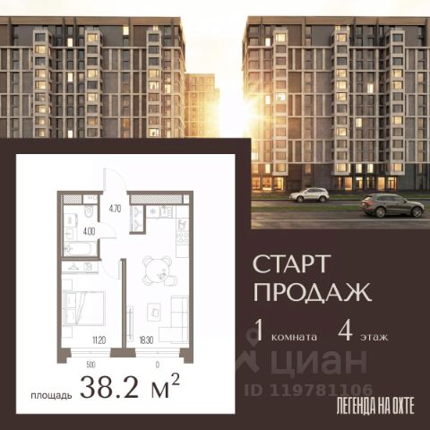 Продается 1-комн. квартира с предчистовой отделкой в ЖК "ЛЕГЕНДА на Охте" на 4 этаже. Общая площадь: 38.2 кв.м., жилая: 11.2 кв.м., площадь просторной кухни-столовой: 18.3 кв.м. Все окна выходят на одну сторону. В квартире один совмещенный санузел. Высота потолков 2.7 м. Квартира находится в корпусе P. Дом монолитный, двухподъездный, высотой 14 этажей. На этаже 6 квартир. В подъезде 1 пассажирский и 1 грузовой лифт. Начало строительства - 1 квартал 2026 года. Окончание строительства - 4 квартал 2029 года. Оформление сделки по договору долевого участия. В шаговой доступности от дома имеются станции метро (расстояние по прямой): "Новочеркасская" (1.1 км), "Ладожская" (1.3 км), также недалеко от этого корпуса расположены станции метро: "Площадь Александра Невского", "Чернышевская", "Площадь Восстания". Охта — район с выраженным индустриальным характером и архитектурным наследием XX века. Северная часть территории характеризуется сложившейся застройкой и социальной инфраструктурой, которые формируют образ жилого района комфорт-класса. Южная часть расположена ближе к набережной Невы и историческому центру города. Здесь активный ритм деловой и культурной жизни, знаковые памятники архитектуры и развитая транспортная сеть. Именно здесь, на приватной территории, сформированной извилистым течением реки Охты, расположен кластер статусных жилых проектов, ансамбль которого завершает проект "ЛЕГЕНДА на Охте". "ЛЕГЕНДА на Охте" — новый проектс высокими продуктовыми стандартами LEGENDA: продуманный выбор планировочных решений, технологичная комплектация квартир, авторская модель благоустройства, приватность и сервисы. Паркинг и кладовые 10 минут езды до центра города, набережной Невы, деловых кластеров. В шаговой доступности все необходимое для жизни: статусный молл, бизнес-центры, фитнес-студии, парки и супермаркеты. Квартиры спроектированы на базе лучших планировочных решений: дизайнерские квартиры, светлые кухни-гостиные с угловым остеклением, просторные мастер-спальни с собственными санузлами и гардеробными, видовые террасы и лоджии c панорамным остеклением, отдельные зоны хранения и удобные постирочные. Широкий выбор типологий: функциональные планировки разной площади, подходящие для семей с детьми, пар или индивидуального проживания. Благоустройство на основе авторской функционально-компонентной модели Приватный двор без автомобилей с контролем доступа. Зонирование территории: отдельные пространства для детей разного возраста, игровые и спортивные площадки, рекреационные зоны. Озеленение: крупномерные деревья и кустарники, цветочные композиции, учитывающие сезонность. Бесшовные внутридворовые маршруты. Комплектация квартир TechnoBox — технически подготовленное пространство и готовность к декорированию Современные инженерные системы: - готовность к установке "умных" устройств, сплит-лоджии для кондиционеров, подготовка под ПВУ. - Выровненные стены и полы, разводка под дополнительные розетки - Улучшенная шумоизоляция -