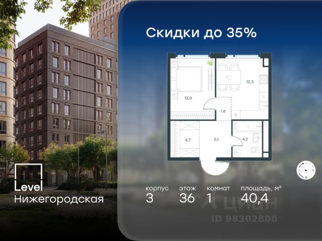 Цена указана с учётом скидки при 100%-й оплате, несубсидированной ипотеке, рассрочке (кроме программы "Рассрочка 0%"). Продается 1-комнатная квартира площадью 42.10 кв. м без отделки. Квартира находится на 3 этаже 20-этажного корпуса 5, в новом жилом комплексе бизнес-класса Level Войковская, расположенном рядом с живописным заповедником "Покровское-Стрешнево" (застройщик - компания Level Group/Левел групп). Прекрасная транспортная доступность - 7 мин. пешком до станции МЦК "Балтийская"; - 15 мин. пешком до станции метро "Войковская"; - 8 мин. на машине до ТТК; - 15 мин. на машине до центра Москвы; - 20 мин. на машине до Москва-Сити. Продуманный архитектурный проект - стильная архитектура от мастерской Фефелова В. В.; - панорамные виды на парки, Химкинское водохранилище и Останкинскую башню; - лобби с высотой потолков до 6,45 метров; - более 20 видов планировочных решений, включая редкие форматы квартир с террасой и увеличенной высотой потолков до 5,42 метров; - 2 варианта дизайнерской отделки в корпусе 4, предлагаются как дополнительная опция к отделке white box: стиль Modern в светлых холодных тонах и стиль Classic в нейтральной бежевой гамме. Квартиры в корпусах 3 и 5 сдаются без отделки. Расположение Level Войковская строится в престижном Северном округе Москвы. Развитая инфраструктура и живописная природа переплетаются в единый ансамбль, столь значимый для комфортной жизни. Войковский район окружают парки и набережные. В шаговой доступности - парк "Покровское-Стрешнево", не более 15-ти минут на велосипеде занимает путь до Тимирязевского парка и 9-ти минут до парка усадьбы Михалково. Рядом более 60 школ, 75 дошкольных учреждений, 17 государственных и 6 частных вузов, 25 супермаркетов, 4 торговых центра, среди которых ТЦ "Метрополис" и ТЦ "Авиапарк". Внутренняя инфраструктура На территории жилого комплекса предусмотрены коммерческие помещения: кафе, ресторан, пекарня и другие сервисы откроются на первых этажах корпусов. Для жителей будет доступен отапливаемый подземный паркинг на 244 машино-места с доступом с любого этажа на лифте. На территории паркинга будет расположено 125 кладовых помещений для хранения сезонного инвентаря. Лобби и благоустройство Дизайн лобби Level Войковская создан совместно с бюро BLANK. Это уютные гостиные, где хочется задержаться. Теплая цветовая гамма, ресепшен, зоны ожидания, лапомойки и гостевые санузлы - каждая деталь превращает лобби в комфортное продолжение вашего дома. 1,15 га площади в первых двух этапах строительства отведено под приватный внутренний двор, который спроектирован совместно с бюро "Правда". Детские площадки для всех возрастов, спортивные пространства для йоги, воркаута и петанка, уютные зоны для тихого отдыха или работы. Здесь утро начинается с вдохновения, а вечер наполнен приятными моментами. Лифты Комфортное перемещение внутри жилого комплекса будут обеспечивать надёжные лифты с доступом в паркинг с жилых этажей. В каждом корпусе предусмотрено по 3 грузопассажирских лифта.