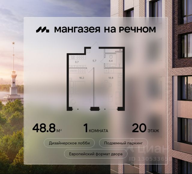 В продаже 1-к квартира площадью 39.5 м2. Функциональная планировка, кухня-гостиная, просторные санузел и гардеробная. Квартира расположена на 5-м этаже 12-этажного дома. Стоимость указана с учетом скидки 12%, экономия составит 2 848 266 рублей! Стоимость квартиры без скидки 23 735 550 рублей. Условия покупки со скидкой 10%: - 100% оплата - Базовая ипотека Условия покупки без скидки: - Семейная ипотека от 3,5% на весь срок - Ипотека 0,11% на первый год - Рассрочка без процентов - Trade-in с проживанием на время строительства дома "Мангазея на Речном" расположена рядом с набережной, парками и территорией Северного речного вокзала. Первая очередь проекта два дома 12 и 24 этажа с приватным двором, ландшафтным благоустройством и инфраструктурой только для резидентов: кинозал, коворкинг, переговорные, зоны отдыха и комнаты для занятия фитнесом. Инфраструктура: - Школа на 1000 мест и детский сад - Дом Wellness со СПА-центром, фитнесом и массажными кабинетами и два бассейна, один из них под открытым небом - Два бассейна, один из них под открытым небом - Прогулочная набережная протяженностью 3,2 км с террасами - Зона воркаута и детские площадки - Ретейл, кафе, рестораны и бутики на первых этажах - Причалы для остановки яхт и небольших катеров Транспортная доступность: - 10 минут пешком до м. Речной вокзал - 15 минут пешком до м. Беломорская - 15 минут на машине до Белорусского вокзала - 17 минут на машине до Садового Кольца В первых корпусах "Мангазеи на Речном" представлены квартиры бизнес-класса с мастер-спальнями, террасами и видами на парк. Эксклюзивные форматы лоты с увеличенной высотой потолков и собственными выходом на благоустроенную территорию.