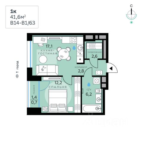 В продаже — однокомнатная квартира, общей площадью 45,1 кв. м. Квартира расположена на втором этаже девятиэтажного корпуса Балансд в квартале В14 нового района СберСити, который строит Сбер. Архитектуру корпусов кварталов разработало итальянское бюро. В облике отражена природная палитра: для фасадов выбраны небесно-голубой и травянистый зелёный оттенки. Декоративные металлические рамы окон и эркеры служат выразительными акцентами. Из окон открываются виды на парк и закаты над рекой. Всего в трёх минутах пешком — набережная, а рядом — главный парк СберСити. Во дворах без машин — много зелени, деревьев, кустарников и многолетних растений, детские площадки и тихие зоны отдыха. Дом возводится по технологии монолитного строительства. Фасады отделываются терракотовыми и алюминиевыми композитными панелями. В квартирах будет установлена система "умный дом", объединяющая управление квартирой, домом и прилегающей территорией. Жильцы смогут регулировать климат и освещение голосом или со смартфона, а также управлять сценариями освещения по заданным параметрам. Повышенная шумоизоляция и двухкамерные стеклопакеты с алюминиевым профилем обеспечивают комфорт и тишину. В доме предусмотрены: уютное лобби, лапомойка, колясочная и велосипедная комната на первом этаже, подземный паркинг. СберСити — это новый жилой и деловой район на западе Москвы, в одном из самых экологически чистых и престижных мест столицы. Это первая в России и крупнейшая в мире инновационная городская среда, созданная по международным стандартам зелёного проектирования. Здесь внедряются решения в области энергоснабжения, вакуумного мусороудаления, тестирования зелёных технологий, а в дальнейшем — системы искусственного интеллекта для управления домами и городской инфраструктурой. Строительство проекта началось в 2021 году, заселение первых корпусов — с лета 2024-го. Общая площадь территории — 461 га, из них более 2,5 млн кв. м жилья и около 833 тыс. кв. м офисных пространств. Будет построено 7 школ, 13 детских садов и 2 поликлиники. В СберСити будут жить 65 тыс. человек и работать 70 тыс. Развитием территории занимается АО "Рублёво-Архангельское", входящее в группу Сбер. СберСити — место, где хочется жить, работать и растить детей. Переезжайте в СберСити!