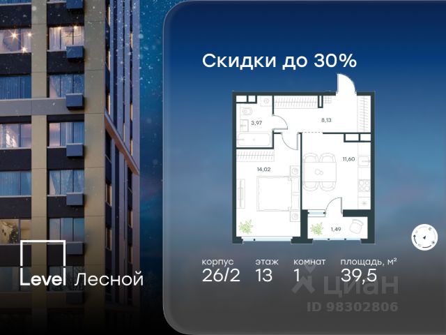Квартира в ЖК "Новый Зеленоград" | 1-комнатная | 37.8 м² | 17 этаж из 18 | Срок сдачи — IV кв. 2026 года Откройте для себя комфорт и экологию в современном жилом комплексе "Новый Зеленоград" в окружении лесов и водоемов всего в 500 метрах от Зеленограда. Экологичная локация: Живите в гармонии с природой, не отказываясь от удобств города! Заповедные леса и водоемы — идеальное место для прогулок и активного отдыха 5 минут до Зеленограда — развитая городская инфраструктура 25 минут до МКАД — удобный выезд Современный комфорт: Архитектура с яркими фасадами и большими окнами Кладовые и просторные входные группы Высокие потолки (2,6 м), продуманные планировки с просторными комнатами и гардеробными Квартиры без отделки или с готовым ремонтом Развитая инфраструктура: Уже открыты детский сад и начальная школа с современными образовательными программами Магазины, кафе, аптеки, пункты выдачи и сервисы на первых этажах Игровые площадки для детей разных возрастов Спортивные площадки и футбольное поле, скейтпарк и зона воркаут для активного образа жизни Безопасность и удобство: Благоустроенные дворы без машин, видеонаблюдение Автомобильная парковка на территории Собственная управляющая компания Финансовые условия и программы покупки: Все виды ипотеки, включая гос. поддержку с высоким процентом одобрения Рассрочка до 3 лет — покупка квартиры стала еще доступнее ЖК "Новый Зеленоград" — идеальный выбор для тех, кто ценит экологию, комфорт, развитую инфраструктуру и выгодные условия покупки. Узнайте подробности и забронируйте квартиру у наших менеджеров!