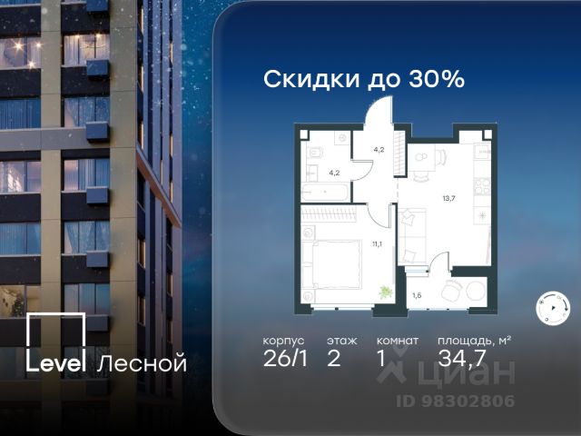 Квартира в ЖК "Новый Зеленоград" | 1-комнатная | 37.8 м² | 17 этаж из 18 | Срок сдачи — IV кв. 2026 года Откройте для себя комфорт и экологию в современном жилом комплексе "Новый Зеленоград" в окружении лесов и водоемов всего в 500 метрах от Зеленограда. Экологичная локация: Живите в гармонии с природой, не отказываясь от удобств города! Заповедные леса и водоемы — идеальное место для прогулок и активного отдыха 5 минут до Зеленограда — развитая городская инфраструктура 25 минут до МКАД — удобный выезд Современный комфорт: Архитектура с яркими фасадами и большими окнами Кладовые и просторные входные группы Высокие потолки (2,6 м), продуманные планировки с просторными комнатами и гардеробными Квартиры без отделки или с готовым ремонтом Развитая инфраструктура: Уже открыты детский сад и начальная школа с современными образовательными программами Магазины, кафе, аптеки, пункты выдачи и сервисы на первых этажах Игровые площадки для детей разных возрастов Спортивные площадки и футбольное поле, скейтпарк и зона воркаут для активного образа жизни Безопасность и удобство: Благоустроенные дворы без машин, видеонаблюдение Автомобильная парковка на территории Собственная управляющая компания Финансовые условия и программы покупки: Все виды ипотеки, включая гос. поддержку с высоким процентом одобрения Рассрочка до 3 лет — покупка квартиры стала еще доступнее ЖК "Новый Зеленоград" — идеальный выбор для тех, кто ценит экологию, комфорт, развитую инфраструктуру и выгодные условия покупки. Узнайте подробности и забронируйте квартиру у наших менеджеров!