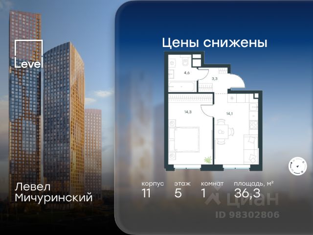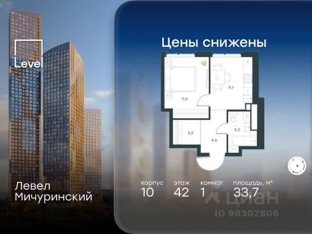 Скидка 35% на все квартиры в жилом комплексе Левел Мичуринский, этапы 3 и 4 (корпуса 7-13). Цена указана с учётом скидки при 100%-й оплате, несубсидированной ипотеке, рассрочке (кроме программы "Рассрочка 0%"). В жилом квартале, расположенном на границе с природным заказником "Долина реки Очаковки", продаётся 1-комнатная квартира площадью 37.00 кв.м с отделкой white box. Квартира расположена на 8 этаже 24-этажного корпуса 11 в жилом комплексе бизнес-класса Левел Мичуринский (компания Level Group/Левел групп). Отличная транспортная доступность: - от 10 мин. пешком до станции метро "Мичуринский проспект" - 15 мин. пешком до станции метро "Аминьевская" - 7 мин. на авто до МКАД - 10 мин. на авто до ТТК - 15 мин. на авто до Москва-Сити Продуманный архитектурный проект: - Выразительная архитектура от известных бюро: корпуса 1-6 - бюро СПИЧ, корпуса 7-13 - архитектурное бюро Анатолия Борисова; - Из окон открываются живописные виды на парки, Москва-Сити и МГУ; - Высокие потолки до 6,35 м; - Стильные лобби с окнами в пол и высокими потолками до 4,7 м; - С каждого этажа дома на лифте можно спуститься в подземный отапливаемый паркинг. Расположение: Жилой комплекс Левел Мичуринский строится в одном из самых зелёных районов Москвы - Очаково-Матвеевское. Этот уголок столицы идеален для поддержания здорового образа жизни. В шаговой доступности от проекта находятся заказник "Долина реки Очаковки" - 1 мин. пешком и Очаковский парк - 7 мин. пешком. На велосипеде можно добраться до таких парков, как "Событие", парк Олимпийской деревни, парк 50-летия Октября и парк Школьников. В 15 минутах езды на авто расположено более 30 детских садов (из них 14 в пешей доступности), 32 школы (из них 13 в пешей доступности) и 14 вузов. Также в ближайшем окружении - более 25 медицинских учреждений, 11 спортивных клубов и 22 продуктовых супермаркета. Внутренняя инфраструктура: На территории жилого комплекса строится три детских сада и школа. На первых этажах домов откроется супермаркет, фитнес-центр, ресторан, кафе и другие сервисы. Подземные этажи займут паркинги: трёхуровневые - в этапах 1 и 2, одноуровневый - в этапах 3 и 4. Преимущества проекта: - 4,5 га благоустроенной территории с видовым мостом, уличным кинотеатром, зонами для тихого отдыха, работы, уличных тренировок, площадки для петанка, футбола, настольного тенниса и пляжного волейбола. - Дизайнерские лобби с панорамным видом на двор, мойками для лап животных и комфортными зонами ожидания. - Безопасность жителей: круглосуточное видеонаблюдение всех зон общего пользования (лобби, лифты, паркинги, детские площадки), система контроля доступа, управление видеодомофоном через мобильное приложение, единый ключ доступа на территорию жилого комплекса. - Технологии и комфорт: высокоскоростной вайфай в лобби и на придомовой территории, автоматическая система контроля и учёта ресурсов, абонентская связь с консьержем, распознавание номеров автомобилей при въезде в паркинг и вые