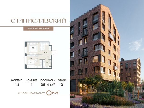 Беспроцентная рассрочка от застройщика. В продаже 1-комнатная квартира площадью 38.4 м², расположенная на 3 этаже в жилом квартале "Станиславский" — проекте бизнес-класса на Новорижском шоссе, всего в 10 минутах от Москвы. В квартире 80 Дом 1 (Корпус 1.1, секция 3) высота потолков — от 3 метров, просторная планировка с гардеробной и большой кухней-гостиной создают комфорт и свободу для воплощения ваших идей. В проекте есть разнообразные отделочные решения, что позволяет реализовать любые дизайнерские предпочтения и планировочные идеи. В "Станиславском" представлены квартиры на любой вкус и для любой семьи: студии, классические и европланировки, а также крупные 4- и 5-комнатные варианты. Все помещения предлагаются без отделки, что дает свободу для создания уникального пространства. Обустроенная территория предусматривает функциональное зонирование: зеленые бульвары, природные тропы, интерактивные зоны, центральная площадь с подиумом для мероприятий и спортивный кластер. Для жителей предусмотрены разнообразные сценарии досуга: тихие зоны для общения, массажные тропы и сад ароматных трав для оздоровления, всесезонные уличные игры и открытые поляны для спортивных и настольных развлечений. Также есть познавательная зона с огородом, скворечниками и микроскопами. В концепции ЖК "Станиславский" особое внимание уделено въездной зоне: здесь создана комфортная площадка для встреч с гостями, обрамленная живой изгородью. Отсюда также открывается доступ к специально оборудованной территории для выгула питомцев — всё продумано для удобства и уюта жителей.