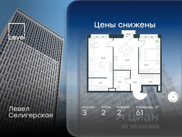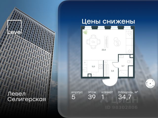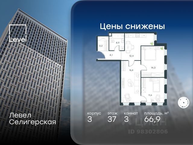 Цена указана с учётом скидки при 100%-й оплате, несубсидированной ипотеке, рассрочке (кроме программы "Рассрочка 0%"). В жилом квартале, расположенном в южной части района Западное Дегунино, продаётся 1-комнатная квартира площадью 40.50 кв.м без отделки. Квартира расположена на 33 этаже 40-этажного корпуса 3 в жилом комплексе комфорт-класса Левел Селигерская (компания Level Group/Левел групп). Отличная транспортная доступность: - 10 мин. пешком до станции метро "Верхние Лихоборы"; - 15 мин. пешком до станции метро "Селигерская"; - 20 мин. пешком до станции МЦД-3 "Моссельмаш"; - 11 мин. на авто до МКАД; - 13 мин. на авто до ТТК; - 16 мин. на авто до Садового кольца. Расположение Район отличается богатой социальной инфраструктурой: школы, детские сады, поликлиники, магазины, фитнес-клубы, торговые центры - всё близко к дому. Рядом с Левел Селигерская расположено 5 парковых зон. В 3 минутах от дома расположен перспективный сквер-парк. В 10 минутах пешком находится парк им. Святослава Фёдорова, в 13 минутах на велосипеде - парк "Ангарские пруды". В 7-11 минутах на автомобиле - два крупных природных объекта: Тимирязевский парк и Главный ботанический сад Российской академии наук. Благоустройство Внутренние дворы жилого комплекса огорожены от машин, а их функциональное наполнение отличается в зависимости от очереди строительства. На территории 2-й очереди жителей ждут уютные навесы с качелями, павильон-читальня, волейбольная площадка, беседки, а также детские и спортивные площадки. Технологии и инженерия Для входа на территорию комплекса предусмотрен единый ключ доступа. Все общественные зоны оснащены камерами видеонаблюдения, по заявке собственнику предоставляется возможность просмотра изображения отдельных видеокамер на его мобильном устройстве. При въезде в паркинг функционирует система распознавания госномеров. Кроме того, для комфорта жителей создано мобильное приложение, с помощью которого можно удаленно контролировать доступ на придомовую и жилую территории. Другие преимущества жилого комплекса - Высокая освещённость квартир: в большинстве из них не менее трёх окон; - Супермаркет, магазины, кафе, пекарни и многое другое на первых этажах домов; - Частный детский сад; - Стильные дизайнерские лобби с высокими потолками до 4,3 м. и окнами в пол, для питомцев предусмотрена лапомойка; - 30+ планировочных решений: от компактных студий до просторных семейных квартир; - С каждого этажа дома на лифте можно спуститься в подземный отапливаемый паркинг."