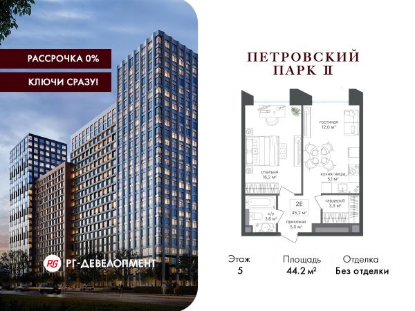 Рассрочка 0%. Первый платёж 30%, второй - не позднее 31.12.2026 г. Продаётся 1-комнатная квартира 52.6 кв.м. в ЖК "Петровский парк II" на 12-м этаже 19 этажного дома. ЖК "Петровский парк II" — жилой комплекс в Савёловском районе, где город ощущается иначе. Здесь история и масштаб Москвы не давят, а задают фон для спокойной, уверенной жизни рядом с центром. Это место, где статус читается не в громких формулировках, а в окружении, архитектуре и ощущении пространства. Коротко о важном: • Район с глубоким историческим контекстом и парковым окружением; • 5 минут пешком до метро "Динамо", рядом с деловой и культурной жизнью города; • Редкое сочетание: энергия мегаполиса и тишина зелёных аллей; • Архитектура от бюро Синтаксис с пластикой форм и индивидуальным характером фасадов; • Панорамные виды на город и зелёные массивы Петровского и Тимирязевского парков; • Закрытый двор без машин, вдохновлённый эстетикой дворцовых садов; • Просторные входные группы с высокими потолками и выверенной, респектабельной эстетикой; • Частный детский сад во дворе; • Подземная парковка и кладовые; • РГ-Девелопмент - ТОП-20 крупнейших застройщиков Москвы. Расположение комплекса формирует особое ощущение свободы выбора. Утром - прогулка по тенистым аллеям Петровского парка, днём - работа и встречи в деловых кластерах поблизости, вечером - культурные события, рестораны и городские пространства в нескольких минутах пути. Здесь расстояния измеряются не километрами, а шагами от дома. Архитектура "Петровского парка II" задумана как современный архитектурный акцент района и одновременно как уважительный диалог с исторической средой. Асимметричные объёмы, волнообразные элементы и игра света и тени создают выразительный, но сдержанный силуэт. Архитектура наполнена воздухом и визуальным ритмом, оставаясь спокойной и уверенной. Общественные пространства продолжают эту логику. Два парадных вестибюля с высокими потолками и благородной цветовой палитрой воспринимаются как пространства, где хочется замедлиться: встретить гостей, перевести дыхание после дня или просто почувствовать уровень среды, в которой вы живёте. Внутренний двор комплекса - это отдельный мир, закрытый от машин и городского шума. Продуманное благоустройство территорий отсылает к регулярным дворцовым садам: геометрия аллей, зелёные "кабинеты", цветники и камерные зоны отдыха создают разные сценарии для повседневной жизни. Здесь органично соседствуют детские игровые пространства, спортивные зоны и тихие места для отдыха. На территории комплекса расположены магазины, кафе и рестораны, а также частный детский сад, встроенный в общую структуру двора. Подземная парковка и кладовые поддерживают ощущение порядка и цельности пространства.