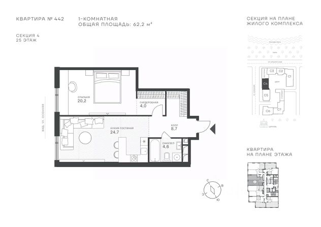 Продается 1-к квартира площадью 61 кв.м. на 5-м этаже в ЖК "Клубный квартал Крылатская 33". Прямая продажа от застройщика! Крылатская 33 - проект премиум-класса на западе Москвы от специализированного застройщика "Сияние". Комплекс расположен всего в 15 минутах от Садового кольца и Москва-Сити, а рядом есть большое количество зелёных зон: Крылатский и Москворецкий парки, Серебряный бор, Крылатские холмы - это создает идеальный баланс между приватностью и динамичным ритмом мегаполиса. Квартал сочетает высотные башни до 150 метров и камерные малоэтажные корпуса. Витражное остекление "в пол" наполняет квартиры светом и открывает захватывающие панорамы на Москву-реку и знаковые виды столицы. Здесь каждый найдет то, что подходит именно ему - от уютных студий до роскошных пентхаусов и квартир с собственными террасами. Внутренняя среда жилого комплекса продумана до мельчайших деталей, чтобы резиденты могли продуктивно работать и качественно отдыхать, не покидая территорию: • фитнес-центр, включающий в себя СПА-зону; • коворкинг с кофейней и быстрым интернетом; • общественная гостиная для организации клубных мероприятий; • ресторан с панорамным остеклением; • благоустроенный сад с зоной отдыха; • инновационная игровая площадка для детей всех возрастов; • консьерж-сервис 24/7, современные системы видеонаблюдения и пожаротушения; • двухуровневый паркинг и многое другое. Район Крылатское - точка притяжения для тех, кто выбирает активный образ жизни. В непосредственной близости расположены Гребной канал, Олимпийский велотрек, горнолыжный комплекс "Лата Трэк", гольф-клуб и парковые зоны. В проекте действуют привлекательные условия покупки: - выгода до 10% при 100% оплате (действует на ограниченный пул квартир, подробности уточняйте в отделе продаж). - рассрочка от застройщика 0% с первоначальным взносом от 20% на срок до 30.06.2027.