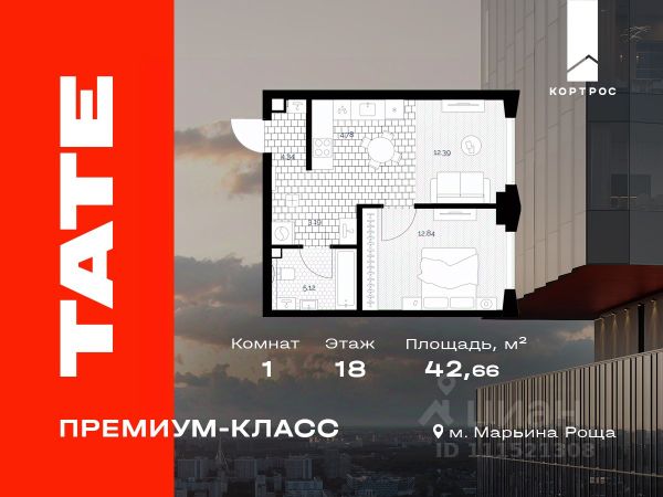 Указанная акционная стоимость доступна при 100% оплате или ипотеке без субсидирования. Цена действует до 31.12.2025 23:49:59. Стоимость без акции 26984185. Продаётся 1-комнатная квартира от застройщика в ЖК премиум-класса TATE на 21 этаже. Общая площадь 42,3 м². Отделка предчистовая (white box). Башня В. Срок сдачи: 2 кв. 2027 Выдача ключей: 4 кв. 2027 Проект расположен на границе с ЦАО в районе Марьина Роща на улице Веткина. В шаговой доступности находится метро Марьина роща (5 минут), парки Останкино и Сокольники (15 минут). До центра столицы время в пути составит 15 минут на авто. На территории премиум квартала откроют спа- и фитнес-центр, бассейн, оборудуют детские и спортивные площадки. Предусмотрен подземный двухуровневый паркинг с контролем доступа и лифтом на жилые этажи. Паркинг рассчитан на 568 машино-мест. Доступ в жилой комплекс осуществляется по биометрическому контролю - Face ID. Территория закрытая с видеонаблюдением и консьерж-сервисом 24/7. Особенности башни В • Потрясающие виды на 4 стороны: Москва-Сити | Останкино | ВДНХ | Тимирязевский парк • Уголовок остекление • Большие метражи квартир • Кладовые на этаже • Квартиры с мастер-спальнями и гардеробными Особенности ЖК: - Исторический район; - Панорамная лаундж-зона на высоте 140 м; - На 4041 этажах видовые пентхаусы площадью до 200 м²; - Два вида отделки: лаконичный и монохромный WhiteBox или готовые интерьеры с безупречным чувством меры - Лобби с потолками высотой почти 6 м; - В отдельном 6-этажном здании на территории будут: просторный фитнес-центр с бассейном, концептуальный ресторан, офисные пространства; - Детские зоны и спортивные площадки; - 6 скоростных лифтов; - Лапомойки для животных; - Безбарьерная среда.