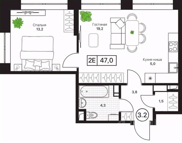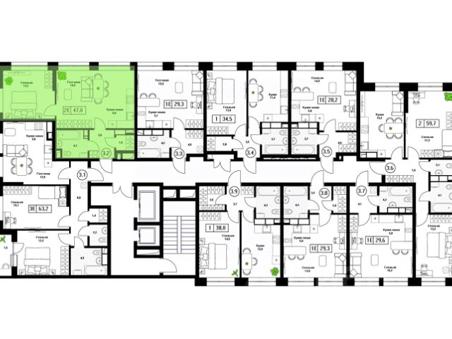 • ✅ Объект наибольшей площади: 46,9 м²