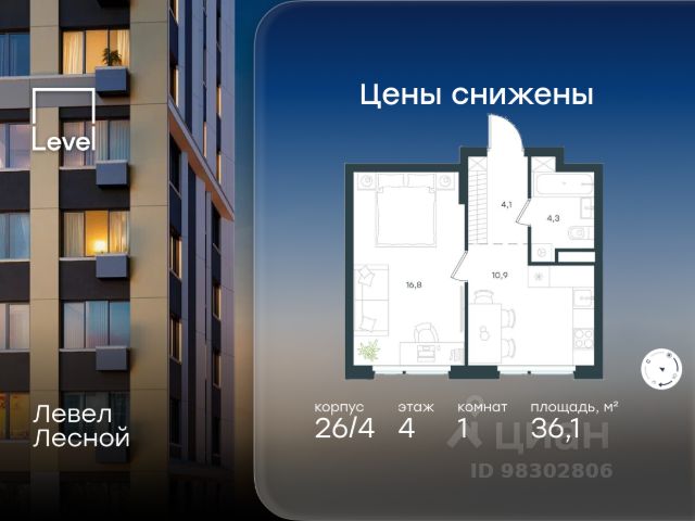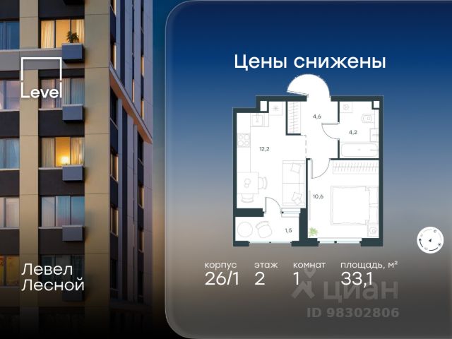 Цена указана с учётом скидки при 100%-й оплате, несубсидированной ипотеке, рассрочке (кроме программы "Рассрочка 0%"). В районе, утопающем в густой зелени лесов, многочисленных парков и скверов, продаётся 1-комнатная квартира площадью 36.70 кв.м без отделки. Квартира расположена на 9 этаже в жилом комплексе комфорт-класса Левел Лесной (компания Level Group/Левел групп). Отличная транспортная доступность: - 25 мин. пешком до станции метро "Пятницкое шоссе"; - 28 мин. на автобусе до станции метро и МЦД-2 "Волоколамская"; - 11 мин. на авто до МКАД; - 25 мин. на авто до ТТК. Продуманный архитектурный проект: - Концепция проекта Левел Лесной от бюро СПИЧ; - Высотность комплекса до 15 этажей с уникальными видами на лесные массивы и город; - Высота потолков до 3 м; - Современные окна высотой до 1,6 м, в части квартир предусмотрены окна в пол. Высота подоконников 0,6 м; Расположение: Жилой комплекс Левел Лесной строится в зелёной зоне ближайшего Подмосковья, г.о. Красногорск в посёлке Отрадное. Шаговая и автомобильная доступность до метро и больших транспортных артерий города. За 25 минут вы дойдёте до станции метро "Пятницкое шоссе", а за 20 минут на машине сможете доехать до станции метро "Тушинская". Район окружен роскошной зеленью лесов и парковых зон, занимающих территорию свыше 1 000 гектаров. Помимо благоприятной экологии, здесь множество возможностей для активного отдыха и поддержания физической формы. Облагороженная территории с полностью развитой инфраструктурой. На территории проекта находится детский сад и школа "Светлые Горы", которая входит в список лучших частных школ от Forbes Education (по данным на 2023г.). Кроме того, в пешей доступности расположено ещё 8 детских садов, а также запланировано открытие современной муниципальной школы. В непосредственной близости находятся сетевые супермаркеты и локальные магазины, аптеки, клиники, почта, библиотека, салоны красоты, рестораны, спортивные и творческие секции, развивающие детские центры. В 12 минутах пешком расположен торговый парк "Отрада" с продуктовым и строительным гипермаркетами, магазинами, кинотеатром и развлечениями для детей. Внутренняя инфраструктура: Мы знаем, как важно, чтобы магазины и сервисы были всегда рядом. В сданных корпусах жилого комплекса Левел Лесной уже расположена полностью готовая развитая инфраструктура. На первых этажах корпуса 27 предусмотрено ещё 14 коммерческих помещений. Благоустройство: Продуманное пространство и аура приватного европейского городка рождают чувство лёгкости и расслабления у каждого, кто попадает на территорию проекта. Концепцию общественных площадок разработали в партнёрстве два архитектурных бюро: "Хайлайт Архитектура" (Highlight Architecture) и "Скейп" (Scape). В безопасных дворах без машин каждый обязательно найдёт себе место для вдохновения, отдыха и спорта.