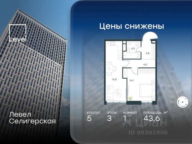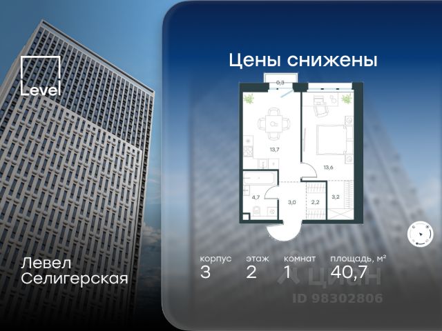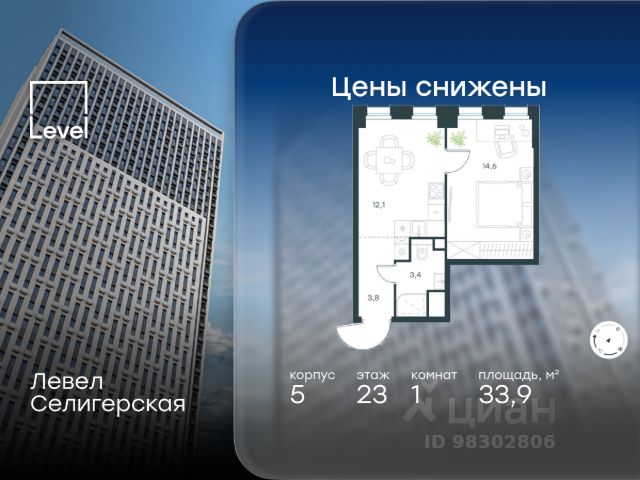 Цена указана с учётом скидки при 100%-й оплате, несубсидированной ипотеке, рассрочке (кроме программы "Рассрочка 0%"). В жилом квартале, расположенном в южной части района Западное Дегунино, продаётся 1-комнатная квартира площадью 29.50 кв.м без отделки. Квартира расположена на 2 этаже 40-этажного корпуса 5 в жилом комплексе комфорт-класса Левел Селигерская (компания Level Group/Левел групп). Отличная транспортная доступность: - 10 мин. пешком до станции метро "Верхние Лихоборы"; - 15 мин. пешком до станции метро "Селигерская"; - 20 мин. пешком до станции МЦД-3 "Моссельмаш"; - 11 мин. на авто до МКАД; - 13 мин. на авто до ТТК; - 16 мин. на авто до Садового кольца. Расположение Район отличается богатой социальной инфраструктурой: школы, детские сады, поликлиники, магазины, фитнес-клубы, торговые центры - всё близко к дому. Рядом с Левел Селигерская расположено 5 парковых зон. В 3 минутах от дома расположен перспективный сквер-парк. В 10 минутах пешком находится парк им. Святослава Фёдорова, в 13 минутах на велосипеде - парк "Ангарские пруды". В 7-11 минутах на автомобиле - два крупных природных объекта: Тимирязевский парк и Главный ботанический сад Российской академии наук. Благоустройство Внутренние дворы жилого комплекса огорожены от машин, а их функциональное наполнение отличается в зависимости от очереди строительства. На территории 2-й очереди жителей ждут уютные навесы с качелями, павильон-читальня, волейбольная площадка, беседки, а также детские и спортивные площадки. Технологии и инженерия Для входа на территорию комплекса предусмотрен единый ключ доступа. Все общественные зоны оснащены камерами видеонаблюдения, по заявке собственнику предоставляется возможность просмотра изображения отдельных видеокамер на его мобильном устройстве. При въезде в паркинг функционирует система распознавания госномеров. Кроме того, для комфорта жителей создано мобильное приложение, с помощью которого можно удаленно контролировать доступ на придомовую и жилую территории. Другие преимущества жилого комплекса - Высокая освещённость квартир: в большинстве из них не менее трёх окон; - Супермаркет, магазины, кафе, пекарни и многое другое на первых этажах домов; - Частный детский сад; - Стильные дизайнерские лобби с высокими потолками до 4,3 м. и окнами в пол, для питомцев предусмотрена лапомойка; - 30+ планировочных решений: от компактных студий до просторных семейных квартир; - С каждого этажа дома на лифте можно спуститься в подземный отапливаемый паркинг."