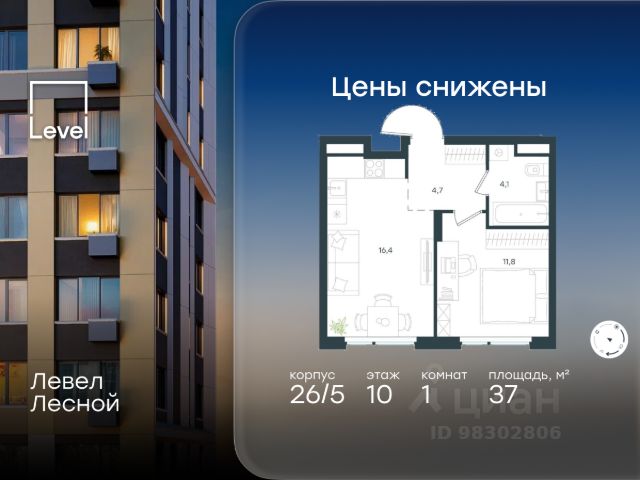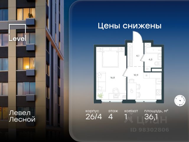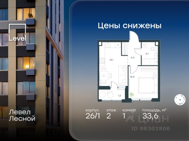 Цена указана с учётом скидки при 100%-й оплате, несубсидированной ипотеке, рассрочке (кроме программы "Рассрочка 0%"). В районе, утопающем в густой зелени лесов, многочисленных парков и скверов, продаётся 1-комнатная квартира площадью 36.10 кв.м с предчистовой отделкой. Квартира расположена на 7 этаже в жилом комплексе комфорт-класса Левел Лесной (компания Level Group/Левел групп). Отличная транспортная доступность: - 25 мин. пешком до станции метро "Пятницкое шоссе"; - 28 мин. на автобусе до станции метро и МЦД-2 "Волоколамская"; - 11 мин. на авто до МКАД; - 25 мин. на авто до ТТК. Продуманный архитектурный проект: - Концепция проекта Левел Лесной от бюро СПИЧ; - Высотность комплекса до 15 этажей с уникальными видами на лесные массивы и город; - Высота потолков до 3 м; - Современные окна высотой до 1,6 м, в части квартир предусмотрены окна в пол. Высота подоконников 0,6 м; Расположение: Жилой комплекс Левел Лесной строится в зелёной зоне ближайшего Подмосковья, г.о. Красногорск в посёлке Отрадное. Шаговая и автомобильная доступность до метро и больших транспортных артерий города. За 25 минут вы дойдёте до станции метро "Пятницкое шоссе", а за 20 минут на машине сможете доехать до станции метро "Тушинская". Район окружен роскошной зеленью лесов и парковых зон, занимающих территорию свыше 1 000 гектаров. Помимо благоприятной экологии, здесь множество возможностей для активного отдыха и поддержания физической формы. Облагороженная территории с полностью развитой инфраструктурой. На территории проекта находится детский сад и школа "Светлые Горы", которая входит в список лучших частных школ от Forbes Education (по данным на 2023г.). Кроме того, в пешей доступности расположено ещё 8 детских садов, а также запланировано открытие современной муниципальной школы. В непосредственной близости находятся сетевые супермаркеты и локальные магазины, аптеки, клиники, почта, библиотека, салоны красоты, рестораны, спортивные и творческие секции, развивающие детские центры. В 12 минутах пешком расположен торговый парк "Отрада" с продуктовым и строительным гипермаркетами, магазинами, кинотеатром и развлечениями для детей. Внутренняя инфраструктура: Мы знаем, как важно, чтобы магазины и сервисы были всегда рядом. В сданных корпусах жилого комплекса Левел Лесной уже расположена полностью готовая развитая инфраструктура. На первых этажах корпуса 27 предусмотрено ещё 14 коммерческих помещений. Благоустройство: Продуманное пространство и аура приватного европейского городка рождают чувство лёгкости и расслабления у каждого, кто попадает на территорию проекта. Концепцию общественных площадок разработали в партнёрстве два архитектурных бюро: "Хайлайт Архитектура" (Highlight Architecture) и "Скейп" (Scape). В безопасных дворах без машин каждый обязательно найдёт себе место для вдохновения, отдыха и спорта.