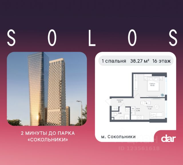 Продаётся 1-комнатная квартира 66.48 м² в жилом комплексе SOLOS (бизнес-класс) рядом с парком Сокольники. Квартиру отличают панорамное остекление, потолки 3.2 м, улучшенная шумо и воздухоизоляция. Дом сдаётся в 4 квартале 2029 года, продажи проходят через эскроусчета. Подземный паркинг, коворкинг, закрытая благоустроенная территория с фонтаном и артобъектами. Гибкие условия покупки. Ключевые преимущества: — Расположение в одном из самых популярных районов старой Москвы, рядом с одним из крупнейших парков столицы — "Сокольники". — До парка 2 минуты пешком. — Удобный выезд на Третье транспортное кольцо. — Метро "Сокольники" в пешей доступности. Архитектура и проект: Solos — две башни бизнескласса, спроектированные архитектурным бюро Kleinewelt Architekten. Прозрачная, лаконичная архитектура с панорамным остеклением открывает виды на парк и центр города. Высота потолков — 3,2 метра, большие окна в пол. В квартирах предусмотрены инженерные решения для акустического комфорта и чистый воздух благодаря близости парка и современным системам вентиляции. Территория: Закрытый двор с благоустройством в созерцательном стиле: фонтан, артобъекты, зоны тихого отдыха, детские и спортивные площадки. Приватность и безопасность обеспечены современными системами доступа и видеонаблюдения. Инфраструктура: — Подземный паркинг; — Коворкинг для резидентов; — Рестораны и кофейни на первых этажах; — Зоны отдыха и озеленения. Гарантии и надёжность: Застройщик — молодая команда с опытом реализации проектов в сегменте бизнескласса. Все продажи ведутся через эскроусчета: ваши средства остаются на счетах в банке и не могут быть использованы до сдачи дома. Условия покупки: — Ипотека от ведущих банков (программы с господдержкой); — Возможна рассрочка на этапе строительства; — Инвестиционные пакеты для сдачи квартир в аренду. Запишитесь на консультацию и выберите свою квартиру уже сегодня. Мы поможем рассчитать ипотеку, подберём планировку и проведём виртуальный или живой тур по шоуруму. Здесь, среди деревьев и новой архитектуры, остаётся пространство для искренности, созидательности и чувствительности (sense-centric).