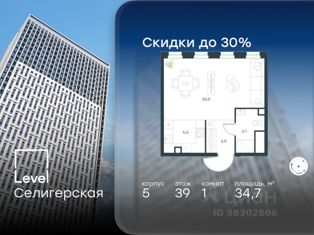 Цена указана с учётом скидки при 100%-й оплате, несубсидированной ипотеке, рассрочке (кроме программы "Рассрочка 0%"). В жилом квартале, расположенном в южной части района Западное Дегунино, продаётся 1-комнатная квартира площадью 47.90 кв.м без отделки. Квартира расположена на 29 этаже 40-этажного корпуса 5 в жилом комплексе комфорт-класса Level Селигерская (компания Level Group/Левел групп). Отличная транспортная доступность: - 10 мин. пешком до станции метро "Верхние Лихоборы"; - 15 мин. пешком до станции метро "Селигерская"; - 20 мин. пешком до станции МЦД-3 "Моссельмаш"; - 11 мин. на авто до МКАД; - 13 мин. на авто до ТТК; - 16 мин. на авто до Садового кольца. Расположение Район отличается богатой социальной инфраструктурой: школы, детские сады, поликлиники, магазины, фитнес-клубы, торговые центры - всё близко к дому. Рядом с Level Селигерская расположено 5 парковых зон. В 3 минутах от дома расположен перспективный сквер-парк. В 10 минутах пешком находится парк им. Святослава Фёдорова, в 13 минутах на велосипеде - парк "Ангарские пруды". В 7-11 минутах на автомобиле - два крупных природных объекта: Тимирязевский парк и Главный ботанический сад Российской академии наук. Благоустройство Внутренние дворы жилого комплекса огорожены от машин, а их функциональное наполнение отличается в зависимости от очереди строительства. На территории 2-й очереди жителей ждут уютные навесы с качелями, павильон-читальня, волейбольная площадка, беседки, а также детские и спортивные площадки. Технологии и инженерия Для входа на территорию комплекса предусмотрен единый ключ доступа. Все общественные зоны оснащены камерами видеонаблюдения, по заявке собственнику предоставляется возможность просмотра изображения отдельных видеокамер на его мобильном устройстве. При въезде в паркинг функционирует система распознавания госномеров. Кроме того, для комфорта жителей создано мобильное приложение, с помощью которого можно удаленно контролировать доступ на придомовую и жилую территории. Другие преимущества жилого комплекса - Высокая освещённость квартир: в большинстве из них не менее трёх окон; - Супермаркет, магазины, кафе, пекарни и многое другое на первых этажах домов; - Частный детский сад; - Стильные дизайнерские лобби с высокими потолками до 4,3 м. и окнами в пол, для питомцев предусмотрена лапомойка; - 30+ планировочных решений: от компактных студий до просторных семейных квартир; - С каждого этажа дома на лифте можно спуститься в подземный отапливаемый паркинг."
