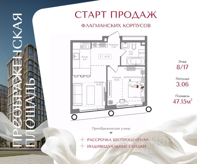 ARTEL два 12-этажных клубных дома по 82 квартиры в каждом. Квартира без отделки. Доступна опция дозаказа (2 варианта отделки на выбор). Особенности: Консьерж-сервис премиального уровня: ваших гостей встретят и проводят, помогут с бытовыми вопросами. Профессиональные службы клининга и охраны обеспечат полный порядок. На ухоженной, безопасной территории комплекса вы не увидите никого кроме соседей. Доступна опция валет-паркинга. Инфраструктура: 58 машиномест в подземном паркинге. Каждое — с зарядкой для электромобиля. Есть мотоместа. Предусмотрено хранение велосипедов и самокатов, колясочные и лапомойки. В приватном атриумном дворе сад с дорожками из натурального камня, воркаут-зона, места для отдыха и работы. Отдельная парковка для курьеров. Для курьеров будет отдельный вход, чтобы не пересекаться с остальными жильцами. Вокруг комплекса много зелени, низкая плотность и этажность окружающей застройки. Новых строек рядом не предвидится. В шаговой доступности: 10 детских садов и 8 школ, Преображенская набережная, кафе и рестораны, ТЦ, музеи, медицинская и спортивная инфраструктура. Сделка по договору долевого участия. Подходит под ипотеку. Возможна рассрочка до 2-х лет, ПВ от 30%.