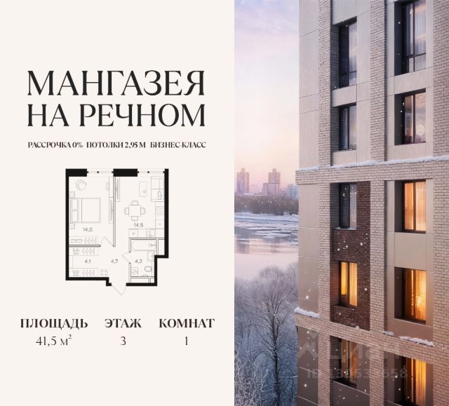 В продаже 1-к квартира площадью 38.5 м2. Функциональная планировка, кухня-гостиная, просторные санузел и гардеробная. Квартира расположена на 5-м этаже 12-этажного дома. Стоимость указана с учетом скидки 10%, экономия составит 2 541 385 рублей! Стоимость квартиры без скидки 25 413 850 рублей. Условия покупки со скидкой 10%: - 100% оплата - Базовая ипотека Условия покупки без скидки: - Семейная ипотека от 3,5% на весь срок - Ипотека 0,11% на первый год - Рассрочка без процентов - Trade-in с проживанием на время строительства дома "Мангазея на Речном" расположена рядом с набережной, парками и территорией Северного речного вокзала. Первая очередь проекта два дома 12 и 24 этажа с приватным двором, ландшафтным благоустройством и инфраструктурой только для резидентов: кинозал, коворкинг, переговорные, зоны отдыха и комнаты для занятия фитнесом. Инфраструктура: - Школа на 1000 мест и детский сад - Дом Wellness со СПА-центром, фитнесом и массажными кабинетами и два бассейна, один из них под открытым небом - Два бассейна, один из них под открытым небом - Прогулочная набережная протяженностью 3,2 км с террасами - Зона воркаута и детские площадки - Ретейл, кафе, рестораны и бутики на первых этажах - Причалы для остановки яхт и небольших катеров Транспортная доступность: - 10 минут пешком до м. Речной вокзал - 15 минут пешком до м. Беломорская - 15 минут на машине до Белорусского вокзала - 17 минут на машине до Садового Кольца В первых корпусах "Мангазеи на Речном" представлены квартиры бизнес-класса с мастер-спальнями, террасами и видами на парк. Эксклюзивные форматы лоты с увеличенной высотой потолков и собственными выходом на благоустроенную территорию.
