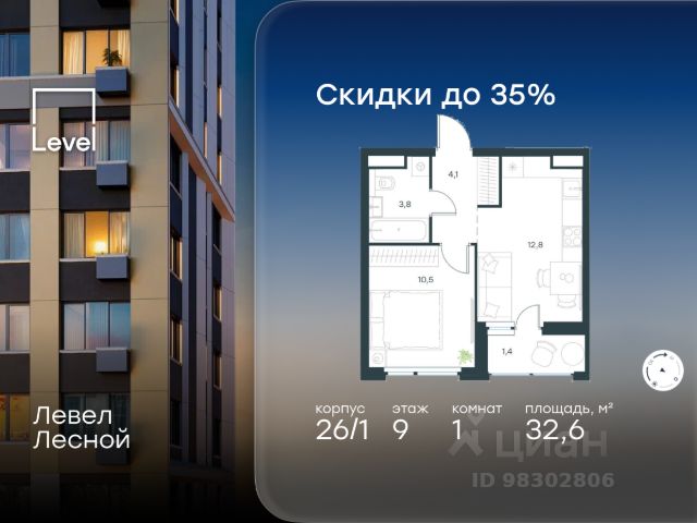 Цена указана с учётом скидки при 100%-й оплате, несубсидированной ипотеке, рассрочке (кроме программы "Рассрочка 0%"). В районе, утопающем в густой зелени лесов, многочисленных парков и скверов, продаётся 1-комнатная квартира площадью 39.50 кв.м без отделки. Квартира расположена на 11 этаже в жилом комплексе комфорт-класса Левел Лесной (компания Level Group/Левел групп). Отличная транспортная доступность: - 25 мин. пешком до станции метро "Пятницкое шоссе"; - 28 мин. на автобусе до станции метро и МЦД-2 "Волоколамская"; - 11 мин. на авто до МКАД; - 25 мин. на авто до ТТК. Продуманный архитектурный проект: - Концепция проекта Левел Лесной от бюро СПИЧ; - Высотность комплекса до 15 этажей с уникальными видами на лесные массивы и город; - Высота потолков до 3 м; - Современные окна высотой до 1,6 м, в части квартир предусмотрены окна в пол. Высота подоконников 0,6 м; Расположение: Жилой комплекс Левел Лесной строится в зелёной зоне ближайшего Подмосковья, г.о. Красногорск в посёлке Отрадное. Шаговая и автомобильная доступность до метро и больших транспортных артерий города. За 25 минут вы дойдёте до станции метро "Пятницкое шоссе", а за 20 минут на машине сможете доехать до станции метро "Тушинская". Район окружен роскошной зеленью лесов и парковых зон, занимающих территорию свыше 1 000 гектаров. Помимо благоприятной экологии, здесь множество возможностей для активного отдыха и поддержания физической формы. Облагороженная территории с полностью развитой инфраструктурой. На территории проекта находится детский сад и школа "Светлые Горы", которая входит в список лучших частных школ от Forbes Education (по данным на 2023г.). Кроме того, в пешей доступности расположено ещё 8 детских садов, а также запланировано открытие современной муниципальной школы. В непосредственной близости находятся сетевые супермаркеты и локальные магазины, аптеки, клиники, почта, библиотека, салоны красоты, рестораны, спортивные и творческие секции, развивающие детские центры. В 12 минутах пешком расположен торговый парк "Отрада" с продуктовым и строительным гипермаркетами, магазинами, кинотеатром и развлечениями для детей. Внутренняя инфраструктура: Мы знаем, как важно, чтобы магазины и сервисы были всегда рядом. В сданных корпусах жилого комплекса Левел Лесной уже расположена полностью готовая развитая инфраструктура. На первых этажах корпуса 27 предусмотрено ещё 14 коммерческих помещений. Благоустройство: Продуманное пространство и аура приватного европейского городка рождают чувство лёгкости и расслабления у каждого, кто попадает на территорию проекта. Концепцию общественных площадок разработали в партнёрстве два архитектурных бюро: "Хайлайт Архитектура" (Highlight Architecture) и "Скейп" (Scape). В безопасных дворах без машин каждый обязательно найдёт себе место для вдохновения, отдыха и спорта.
