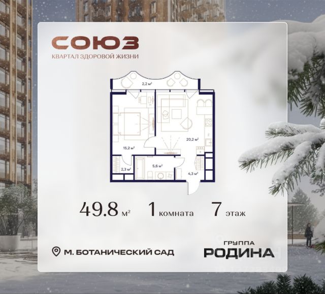 Рассрочка 0% Продаётся 1-комнатная квартира площадью 54.5 м² на 9 этаже в Жилом Комплексе "Союз". Квартал здоровой жизни премиум-класса с рекордным количеством олимпийских видов спорта: - Ледовая арена для хоккея и фигурного катания, - Футбольные поля для тренировок, - Спортивный зал для фехтования, - Бассейн на 6 дорожек, - Центр единоборств, - 4 крытых площадки для настольного тенниса, - 7 теннисных кортов (крытых и открытых), - 4 крытых площадки для сквоша, - Легкоатлетический стадион, - Площадки для баскетбола и волейбола. Уникальные форматы квартир с мастер-спальнями, приватными террасами, балконами, а также пентхаусы с открыточными видами на город. Все квартиры продаются с отделкой Shell&Core и панорамным остеклением. Расположение Пешком: - 2 мин. до парка "Сад Будущего"; - 6 мин. до ст. м. "Ботанический сад"; - 6 мин. до ст. МЦК "Ботанический сад"; - 6 мин. до парка "Леоновская роща"; На автомобиле: - 2 мин. до СВХ (МСД); - 5 мин. до Проспекта Мира; - 10 мин. до ТТК; - 15 мин. до Садового кольца; - 25 мин. до аэропорта "Шереметьево". Благоустройство - собственная спортивная инфраструктура 7 Га; - зона для пикников; - игровые и спортивные площадки для детей всех возрастов; - розарий, а также сосновые, каштановые и дубовые аллеи; - площадки под открытым небом для занятий спортом и йоги; - игровые комнаты для детей; - лаунж-зона для резидентов; - просторная переговорная для деловых встреч; - премиальный ресторан "Шабада" Сосо Павлиашвили с водными арт-объектами на прогулочной аллее, садом ароматных трав и сценой под открытым небом; - кафе, химчистки, аптеки и супермаркеты рядом с домом. Окружение - 8 парков: Сад Будущего, Леоновская роща, Хуамин, Главный ботанический сад РАН, Шереметьевская дубрава, Останкино, парк спорта "Яуза", пойма реки Яуза и музей-усадьба "Останкино"; - 3 ВУЗа: ВГИК, РГСУ, МГПУ; - 12 школ, в том числе: школа 1499 им. И.А. Докукина (топ 100), Brookes Moscow, IThub школа; - 18 детских садов, в том числе билингвальный ALERTUM KIDS; - один из крупнейших океанариумов Европы "Москвариум"; - один из крупнейших в Европе торгово-развлекательных центров "Европолис".