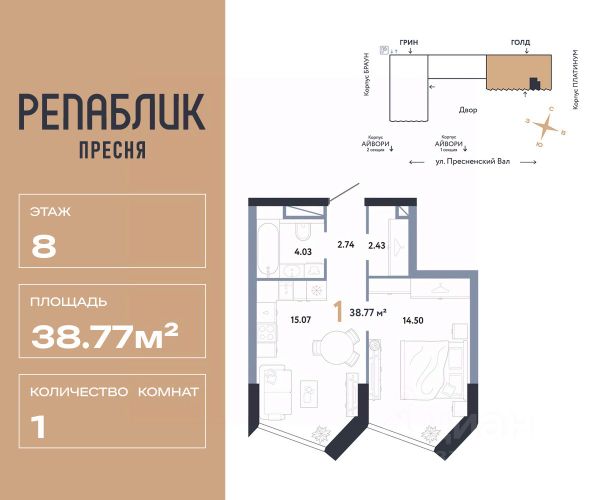 Рассрочка 0% с первым взносом от 20%, ипотека с субсидией или наличные. Подберём способ оплаты индивидуально. Продается 2комнатная квартира на 2 этаже от застройщика Страна Девелопмент. Площадь квартиры 32.04 кв. м. Дизайн-квартал "Republic" — новый проект премиум-класса в Москве от федерального застройщика "Страна Девелопмент". ЦАО, Пресня, 7 мин. от метро "Белорусская". 10 жилых башен и 4 восстановленных здания локомотивного депо образуют уникальное пространство. "Republic" — место, где вы ощутите гармонию истории и современности. За 12 мин. вы сможете дойти до Московского зоопарка, за 10 мин. на авто доехать до Патриарших прудов и Белого дома. Преимущества • Благоустройство. SPA-комплекс с бассейном и термами, гастрономический, учебный и шопинг-центры, приватный бульвар и яркие арт-пространства — для жителей предусмотрены все элементы премиального комфорта. • Панорама на центр. Наслаждайтесь видами ЦАО каждый день: панорама на историческую Пресню и башни Москва-Сити — из своей квартиры или с приватной террасы на крыше. • Концептуальное лобби в каждой башне. С общей террасой на кровле, с библиотекой, коворкингом и фитнес-рум. Стойка консьержа перетекающая в бар и др. • Современные форматы квартир. Свободные планировки, с террасой или балконом, с возможностью установки камина, от 1-комнатных до пентхаусов. Отделка Квартиры сдаются без отделки или в формате White box. При White box уже выполнены все шумные и грязные работы: произведена разводка электричества с подрозетниками, установлены откосы из гипсокартона, устроена стяжка пола с шумоизоляцией и др. Способы покупки Сотрудники "Страна Девелопмент" будут сопровождать вас на каждом этапе сделки, помогут получить одобрение по ипотеке или снизить ежемесячный платеж. - ипотека (стандартная/с субсидией/траншевая) - рассрочка (с ПВ от 20%) - с использованием материнского капитала - оплата наличными
