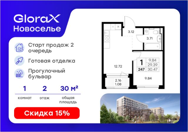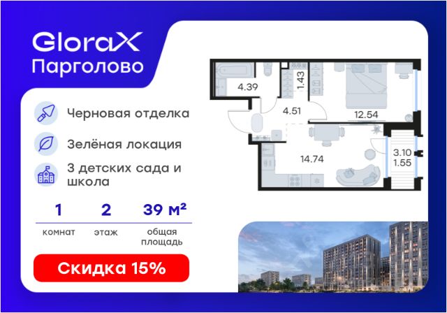 Продается 1-комн. квартира на 18-м этаже в сданном проекте премиум-класса GloraX Premium Василеостровский. Общая площадь лота составляет 56,85 кв. м, из которых 15,92 кв. м отведено под жилую и 23,31 кв. м под кухонную зону. Номер квартиры - 567 Преимущества квартиры: • Большая кухня-гостиная — просторное, светлое сердце дома, где легко собрать гостей за душевной беседой или насладиться уютным вечером в кругу семьи. • Большая терраса — ваш личный уголок под открытым небом: идеальное место для утреннего кофе, летних ужинов или расслабляющего отдыха с видом на город. • Вид во двор — тихая и зелёная перспектива, создающая атмосферу спокойствия и уединения в самом центре жизни. • Вид на променад — живописная панорама наполненная светом и городской энергией. • Эта квартира гармонично сочетает в себе уют домашнего пространства и динамику городской жизни — всё для того, чтобы каждый день приносил вдохновение и комфорт. GloraX Premium Василеостровский это роскошный видовой комплекс премиум-класса на первой береговой линии Финского залива. Проект уникален по своему опциональному наполнению: вся необходимая для комфортной городской жизни инфраструктура будет в составе самого комплекса. Здесь откроется фитнес-клуб класса премиум, кинотеатр только для резидентов, летом будет работать общая видовая терраса на крыше, откуда откроются потрясающие виды на воду. В GloraX Premium Василеостровский расположится гастрономический кластер - ресторанная улица с видом на Финский залив. В пяти минутах пешком от проекта GloraX строит образовательный кластер. В состав кластера войдет общеобразовательная школа с развивающими пространствами, футбольным полем, большим спортивным стадионом и 2 -мя плавательными бассейнами. Во втором корпусе проекта откроется детский сад с собственной территорией для прогулок. Транспортную доступность обеспечивает близость к ЗСД. Дорога до Дворцовой площади займет 25 минут на автомобиле. Ближайшая остановка общественного транспорта находится в 1 минуте пешком от комплекса. Все квартиры передаются с отделкой White Box. Цена указана при 100% оплате или стандартной ипотеке. Узнайте подробности в Отделе про