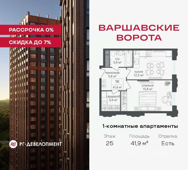 Ипотека для каждого! Полная стоимость кредита от 11,578% до 22,490%. Ставка от 0,11% в АО "Альфа-Банк" фиксируется на 1 год с даты заключения кредитного договора, далее полная стоимость кредита от 25,819% до 28,767% ставка 21,59% до окончания срока кредитования. Первоначальный взнос — от 20% от стоимости квартиры. Срок кредитования — от 3 до 30 лет. Ипотека на весь срок! Полная стоимость кредита от 23,396% до 26,058% со ставкой 14,5%! Первоначальный взнос —от 20,01% от стоимости квартиры. Срок кредитования — от 3 до 30 лет. АО "Банк ДОМ.РФ" универсальная лицензия Банка России 2312 от 19.12.2018. Скидка 7% при покупке квартиры! Цена указана с учетом максимального размера скидки. Продается 1-к квартира 45,9 кв.м. в ЖК "Семеновский парк 2" на 14-м этаже 18 этажного дома. Компания "РГ-Девелопмент" предоставляет скидки на квартиры в жилом комплексе. Акция действительна с 12.09.24 г. до 30.11.25г. включительно. Чтобы воспользоваться предложением, необходимо подписать договор на приобретение недвижимости до 30.11.25г., включительно. Скидка 5% + Рассрочка 0% При приобретении дольщиком квартиры с использованием способа оплаты "Рассрочка 0%", у покупателя также есть право воспользоваться скидкой в размере 5% от полной стоимости квартиры. Условия программы рассрочки: - Первый платеж составляет 20% от стоимости объекта и вносится при заключении ДДУ. - Оставшаяся сумма выплачивается за месяц до планового срока ввода ЖК в эксплуатацию, то есть не позднее 30.11.2025. Прямая продажа от застройщика! Квартиры без отделки. Срок сдачи корпуса - 4 кв. 2025 г. ЖК "Семеновский парк 2" - это идеальное место для того, чтобы стать вашим домом. Проект расположен в исторической части Москвы вблизи Измайловского лесопарка, в 1 км от ЦАО. 4 станции метро отделяют вас от Красной площади и 15 минут на автомобиле - от Садового кольца.