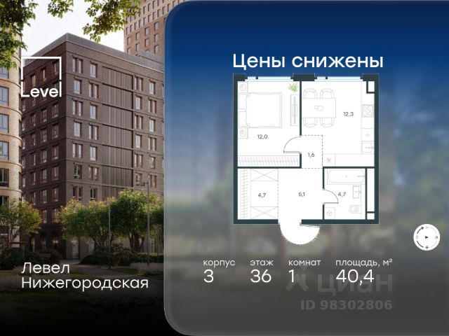 Цена указана с учётом скидки при 100%-й оплате, несубсидированной ипотеке, рассрочке (кроме программы "Рассрочка 0%"). В активно развивающемся районе на юго-востоке столицы продается 1-комнатная квартира площадью 40,4 кв.м без отделки.. Квартира расположена на 36 этаже 37-этажного этажного корпуса 3 в жилом комплексе комфорт-класса Левел Нижегородская (компания Level Group/Левел групп). Отличная транспортная доступность - 10 мин. пешком до станции метро, МЦД-4, БКЛ и МЦК "Нижегородская"; - 13 мин. пешком до станций метро "Андроновка" и "Перово"; - 10 мин. на авто до ТТК; - 14 мин. на авто до Садового кольца. Благоустройство Благоустроенная территория комплекса делится на внешнюю и внутреннюю. Внутренняя часть - это закрытый двор 0,9 га, где обустраиваются детские площадки для разных возрастных групп, беседки для отдыха и работы, несколько спортивных зон, включая зоны для уличных тренировок и лужайку для бадминтона. Здесь же появится ухоженный луг с прогулочными маршрутами. Рядом с жилым комплексом будет создан ландшафтный парк площадью 2,4 га. В парке будут высажены высокие деревья, луговые травы и кустарники, благоустроены лаунж-зоны у пруда, дорожки для бега и прогулок. В центре парка предусмотрена событийная площадь, рядом расположатся дополнительные спортивные и детские площадки, а также зона для выгула домашних питомцев. Внутренняя инфраструктура Дома жилого комплекса будут оснащены коммерческими помещениями, где откроются все необходимые сервисы: магазины, аптеки, салоны красоты, кофейни, службы доставки и многое другое. Комфорт - это когда всё рядом. Кроме того, на территории жилого комплекса Левел Нижегородская предусмотрен подземный отапливаемый паркинг. Этап 1 включает 335 машино-мест и 143 кладовых помещения для хранения сезонных вещей. Технологии и безопасность На территории всех общественных зон постоянно ведется видеонаблюдение и предусмотрен высокоскоростной вайфай. Подъезды, паркинг и внутренний двор оснащены системой контроля доступа. Для удобства жителей создано мобильное приложение, позволяющее связаться с управляющей компанией, осуществлять удаленное управление видеодомофоном или просмотреть изображение отдельных видеокамер по заявке. Для безопасного перемещения по этажам и комфортного спуска в паркинг будут установлены современные лифты от компании BLT Brilliant Elevator. Скорость лифтов - 1,6 - 2,5 м/с. Особенности - Архитектура от экспертов из бюро ARCH(E)TYPE; - Разноуровневая застройка - от секций средней этажности до высоток в 45 этажей (этап 1); - Окна шириной до 2,2 метров (этап1) с видами на Останкинскую башню, Измайловский парк, "Москва-Сити" и Кусковский лесопарк; - Лобби с окнами в пол и потолками от 3,4 метров, оснащенные консьерж-сервисом; - Более 35 видов планировок, включая редкие форматы. Артикул 3-412.
